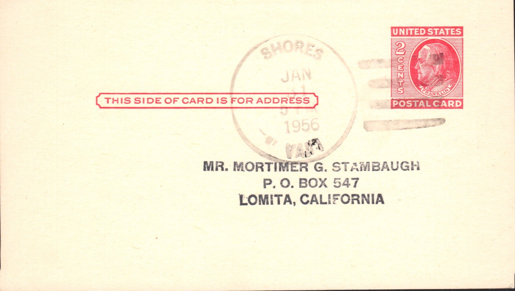Shields (1908-1955) 1955 4-bar on LD Postal Card