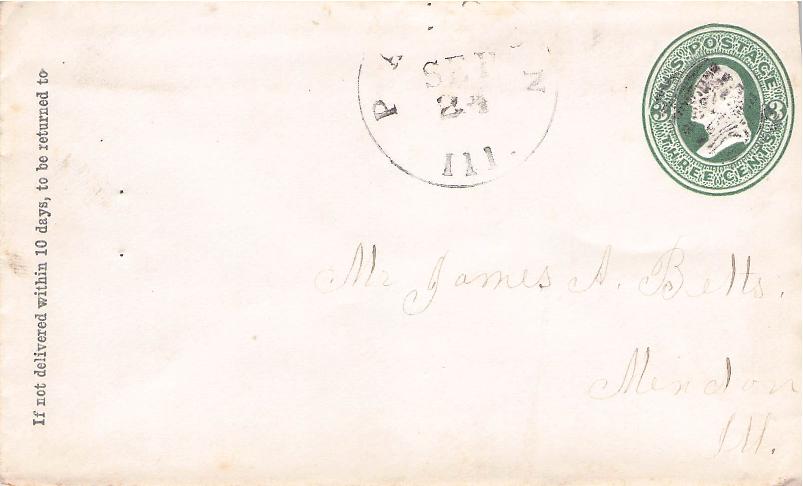 - Payson poor 1870s cds on 3¢ stamped envelope