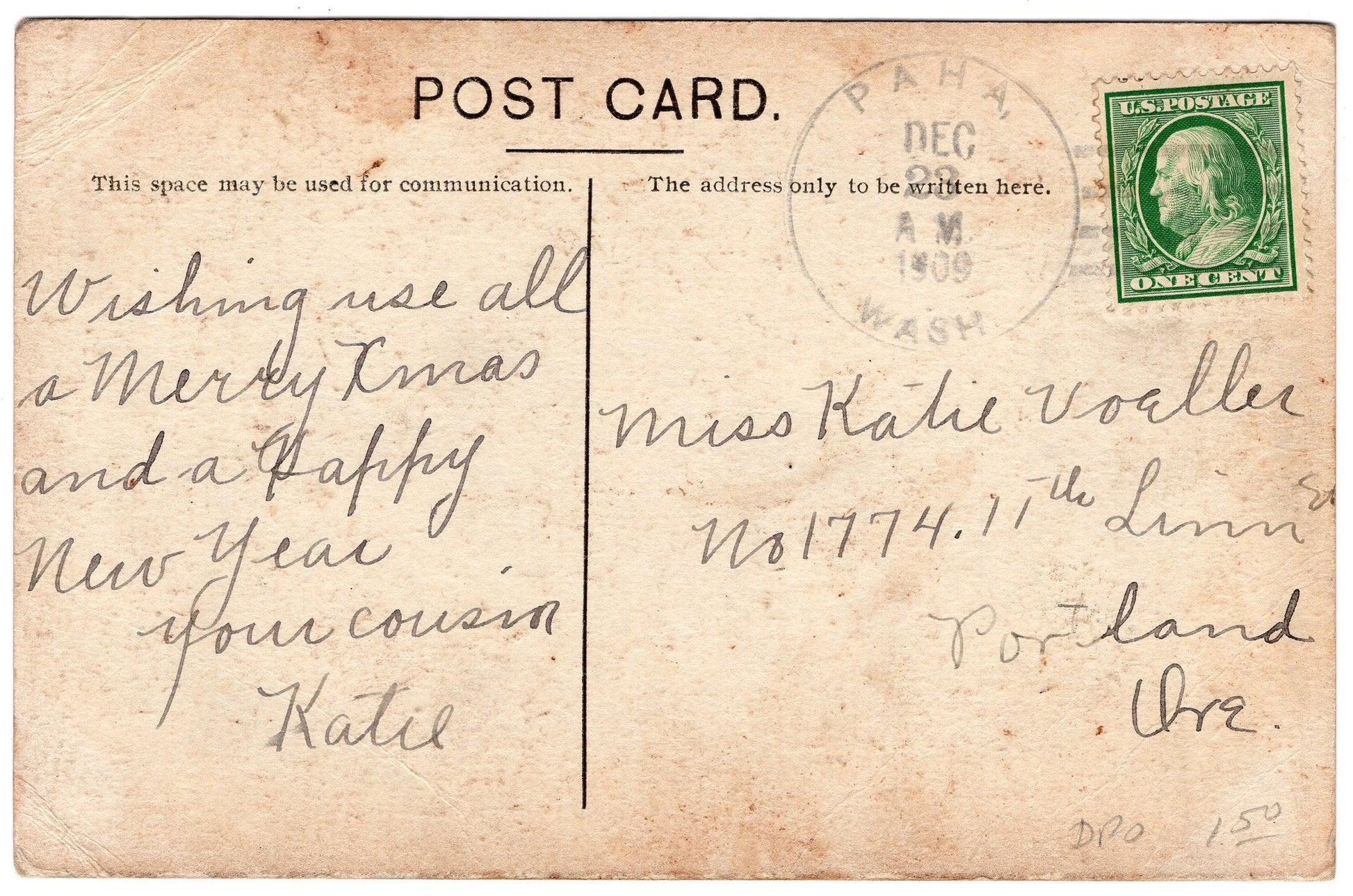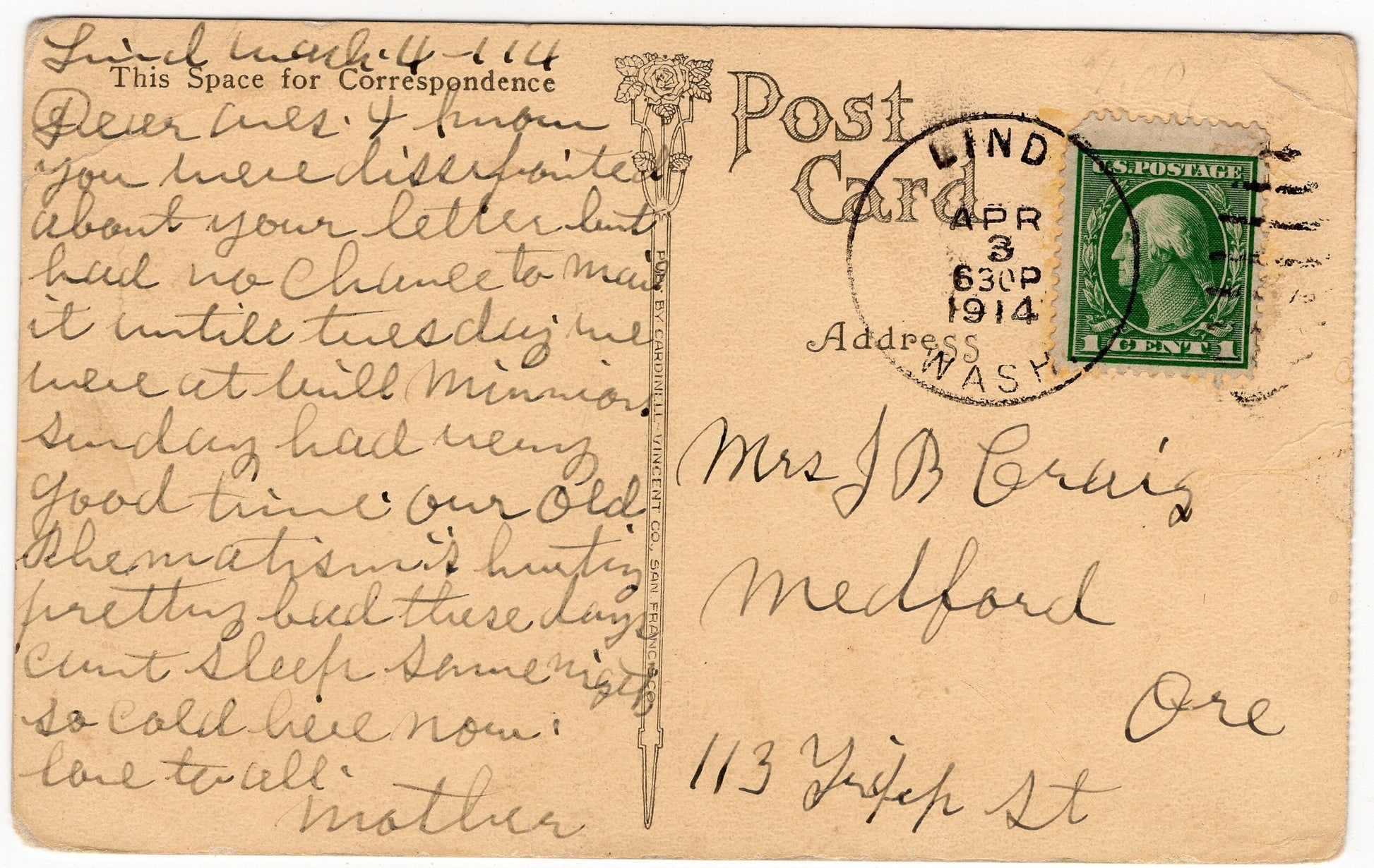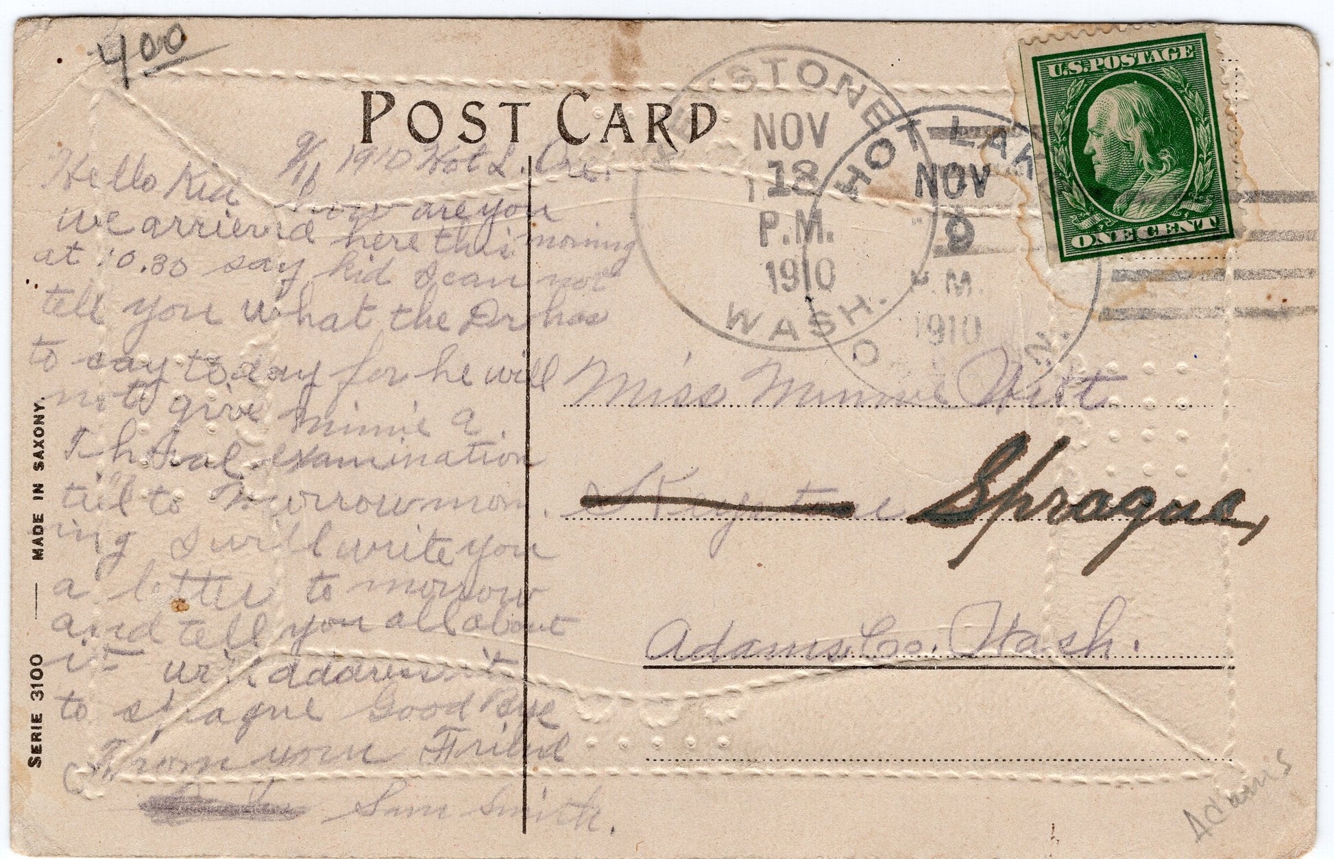 - Keystone (1901-1926) 1910 4-bar as forwarding mark on post card sent from Hot Lake, Ore.