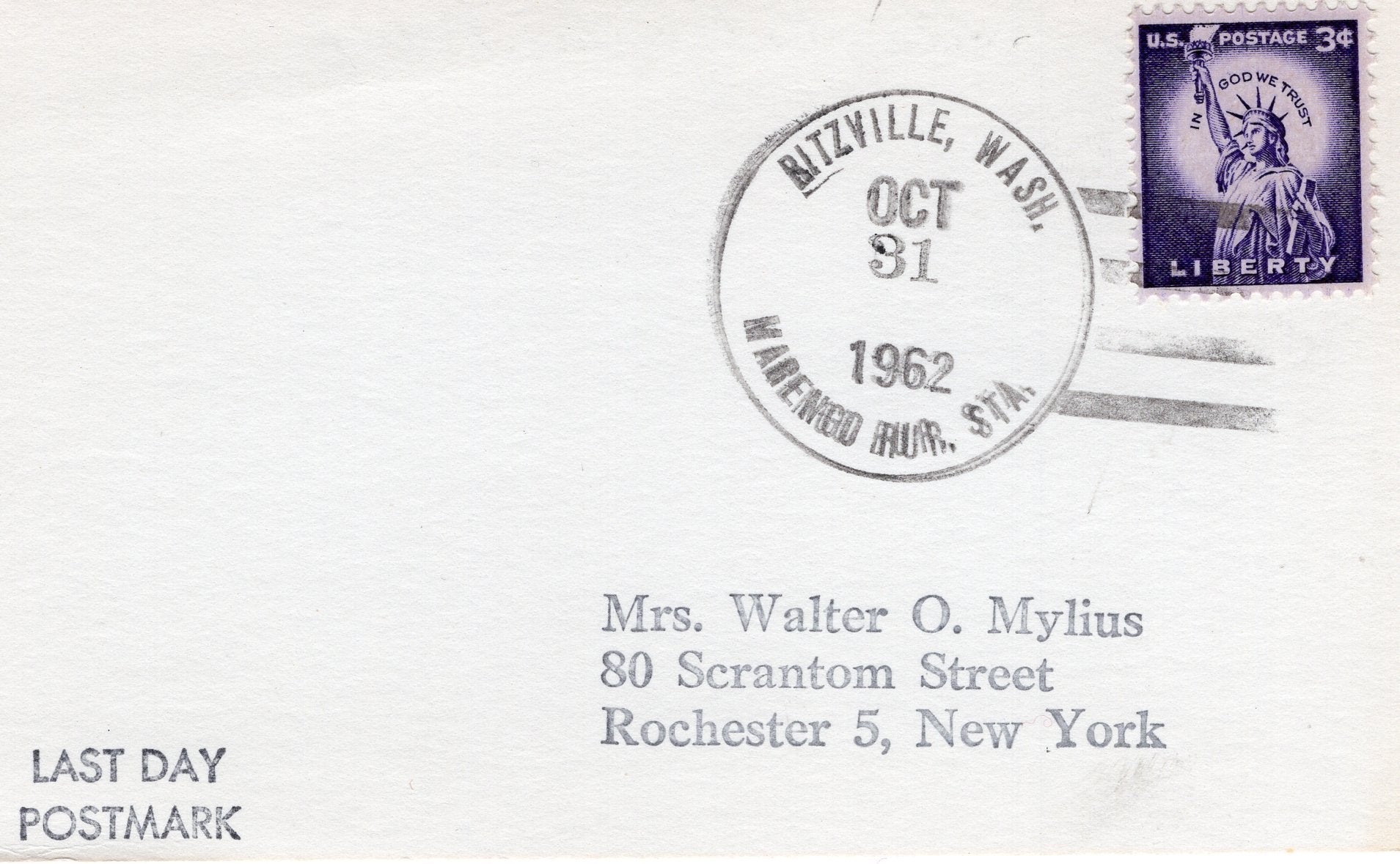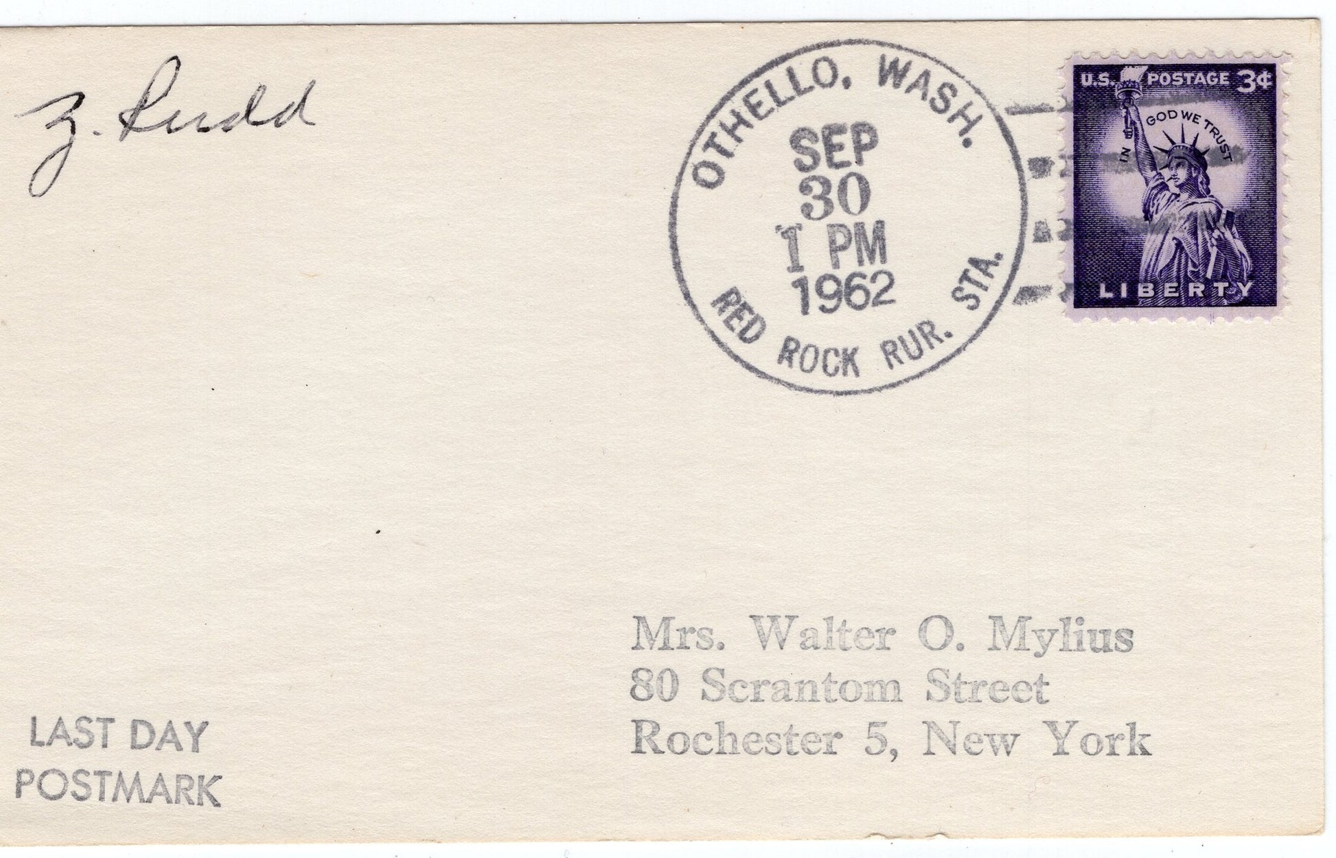 - Marengo RS (Ritzville) (July-Oct. 1962) 1962 4-bar on LD 3x5 card, autograph