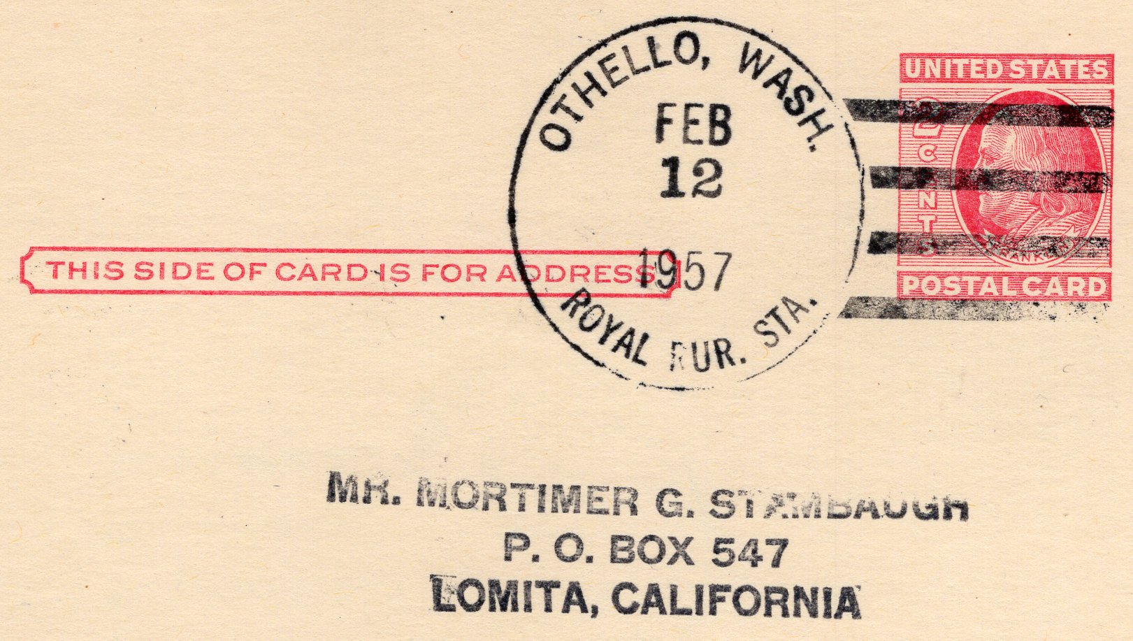 - Royal RS (Othello) (1957-1962) 1957 4-bar on Postal Card
