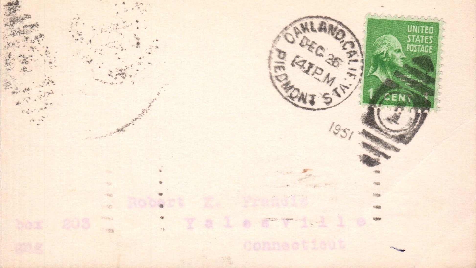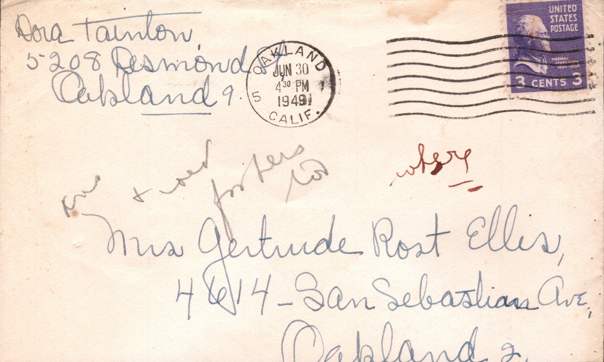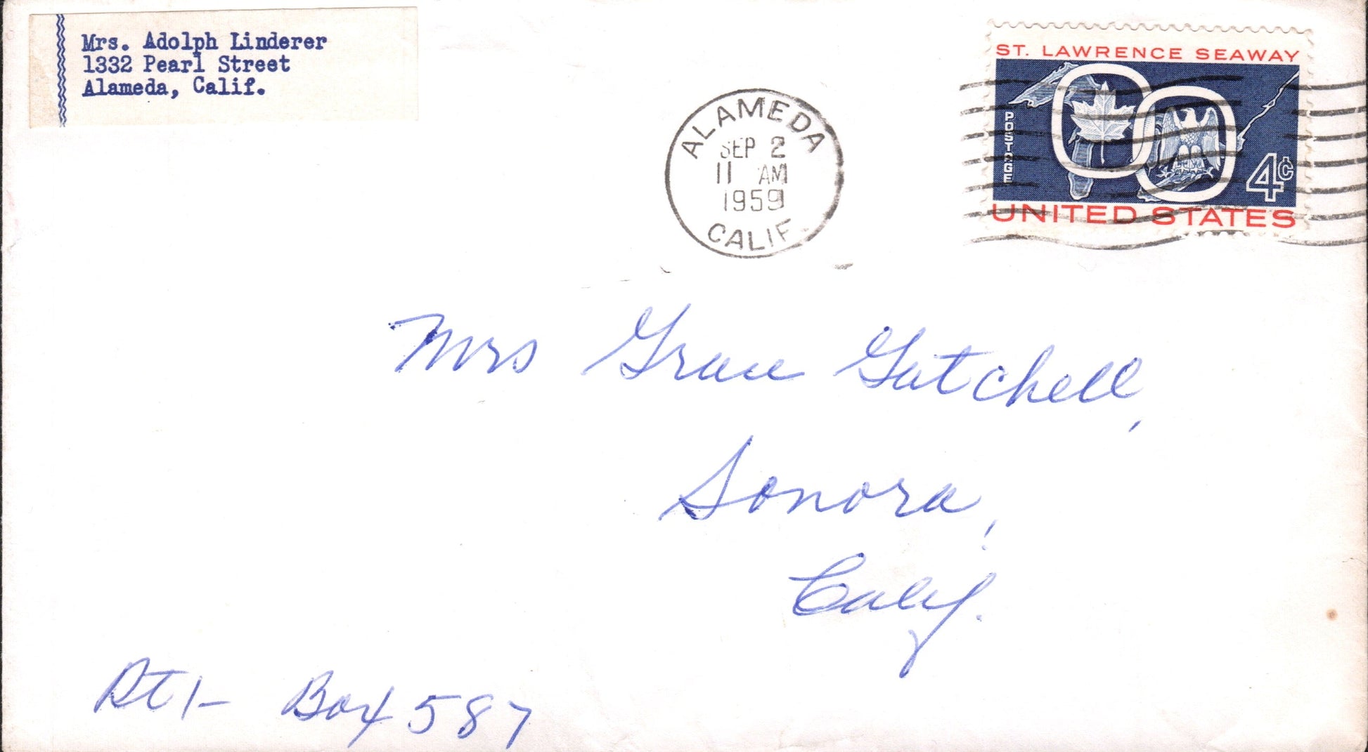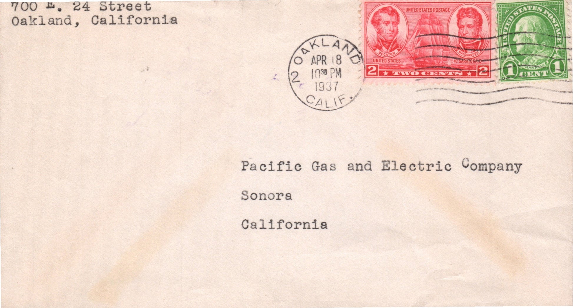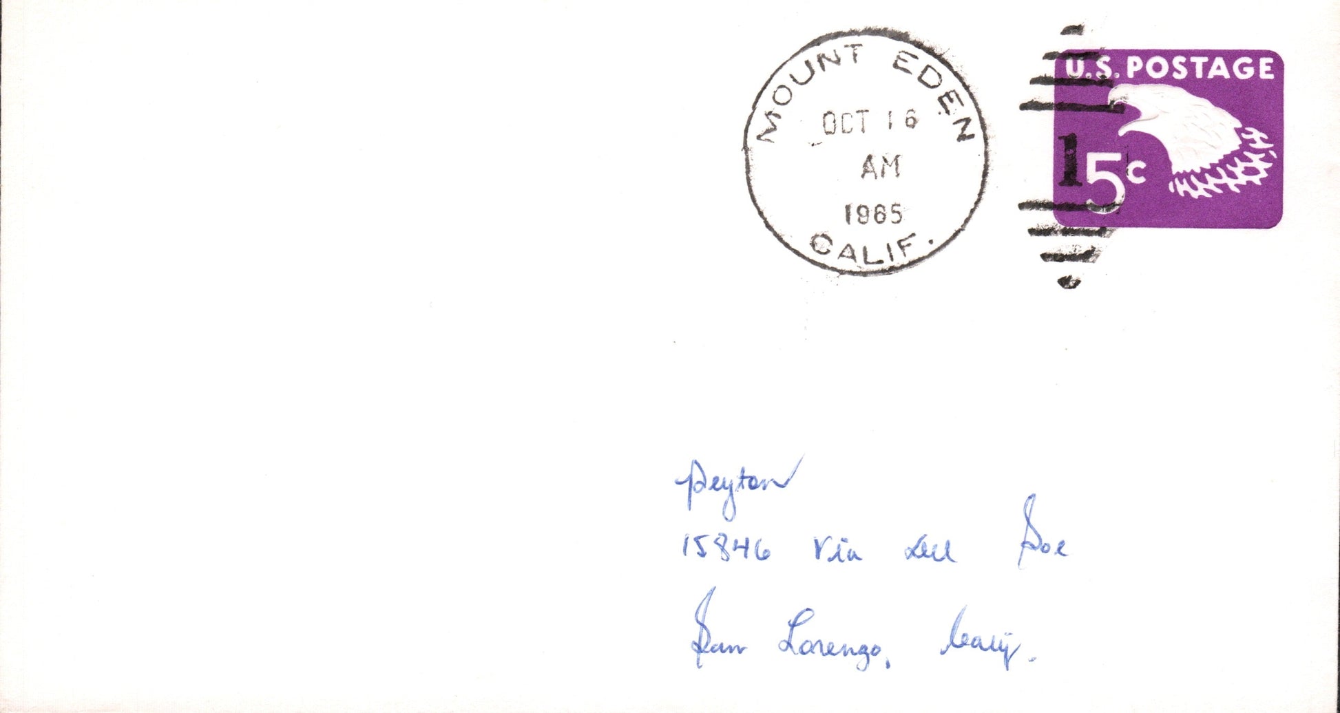 Oakland 1894 duplex 2 on Postal card; 1895 duplex on cover, corner “General Relief Committee I.O.O.F.”; 1912 machine slogan “World’s Panama-Pacific Exposition in San Francisco 1915”; 1920 machine cancel, “Justice’s Court” corner; 1922 machine slogan [incomplete] for Health Exposition in Oakland on cover including letter; 1932 machine cancel dial 3 on cover; 1937 machine cancel dial 2 on cover; 1937 machine cancel dial 3 on cover, “Perfect Fit Manufacturing Co.” corner; 1938 machine slogan “Air Mail Saves Time” on cover; 1942 machine slogan “Buy Defense Savings Bonds and Stamps” on window envelope, corner “Hap Alzina, Indian Motorcycles, Johnson Outboard Motors”; 1948 machine cancel on cover; 1949 machine cancel dial 5 on cover; 1950 machine cancel dial 2 on cover; 1952 duplex on cover; 1952 machine cancel dial 4 on cover; 1962 machine cancel dial 3 on cover; 1965 (3 diff. machine dials, 2 of which are overstruck); 1969 4-bar on cover