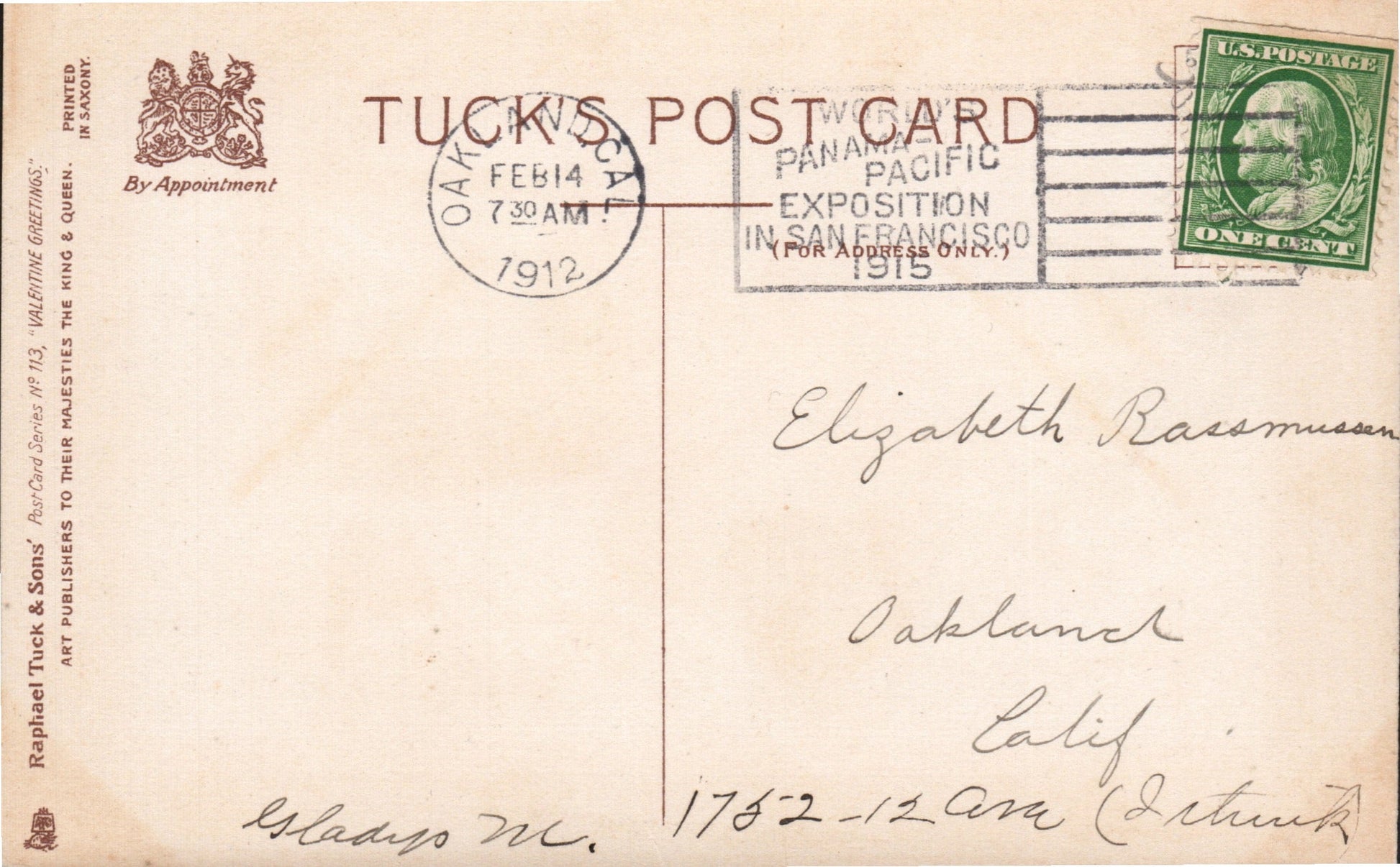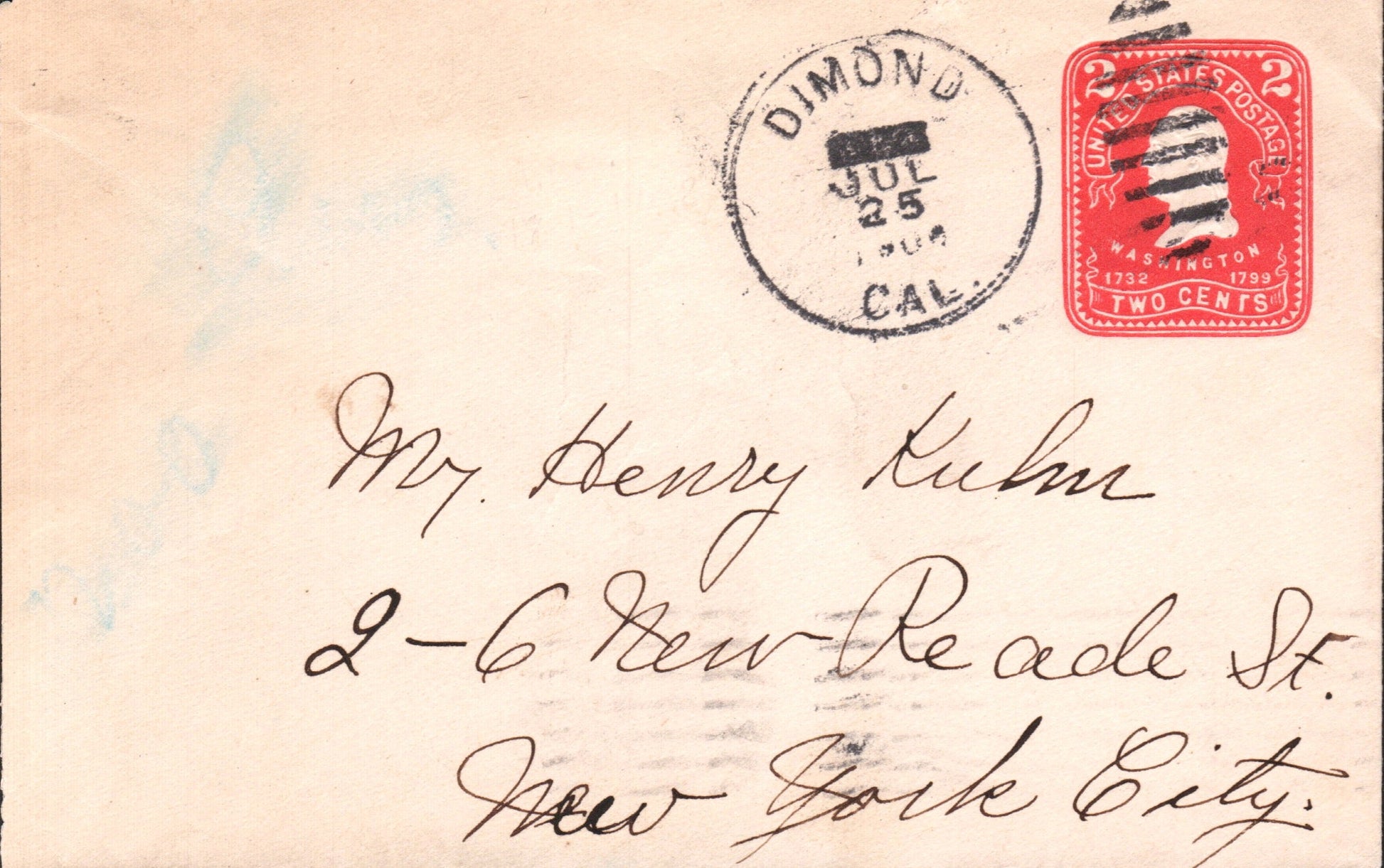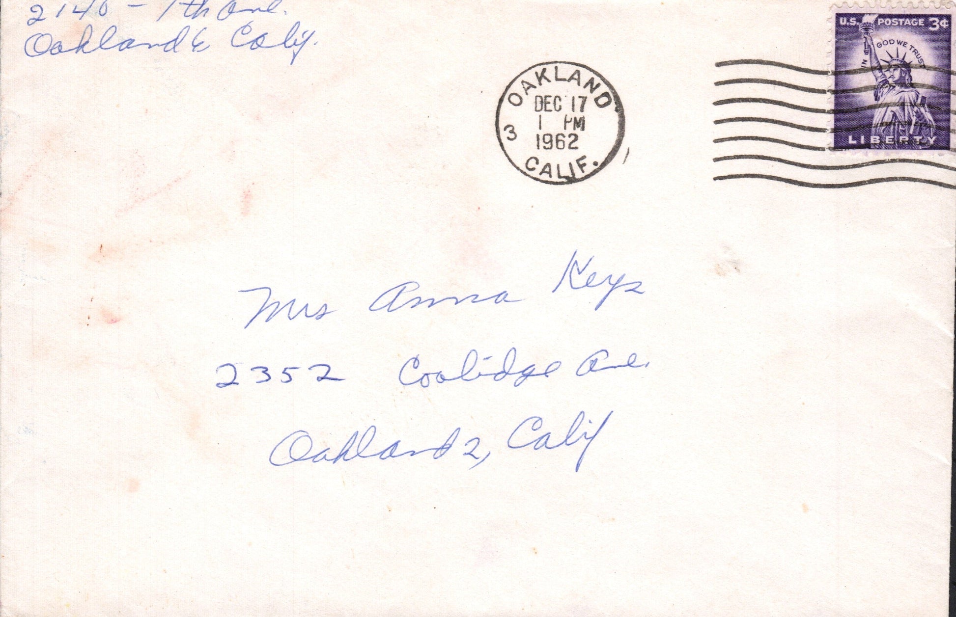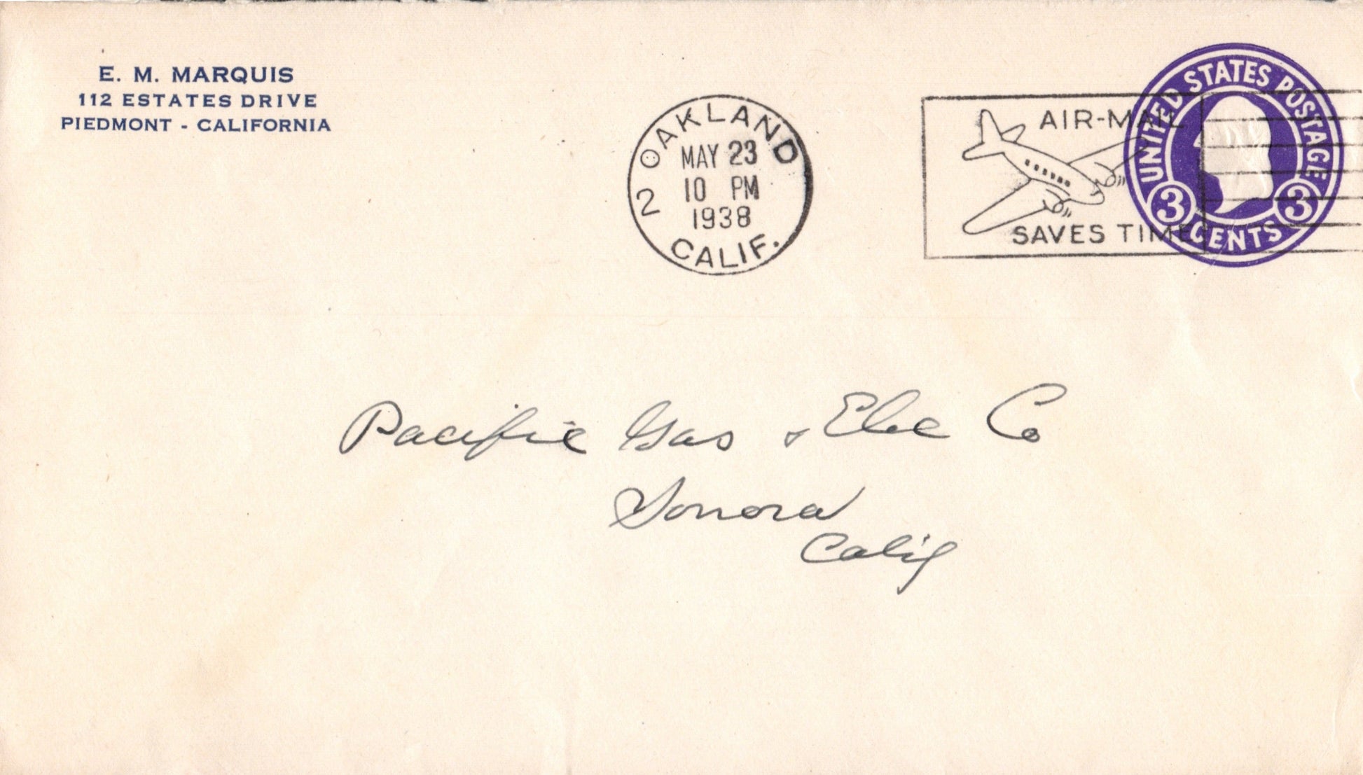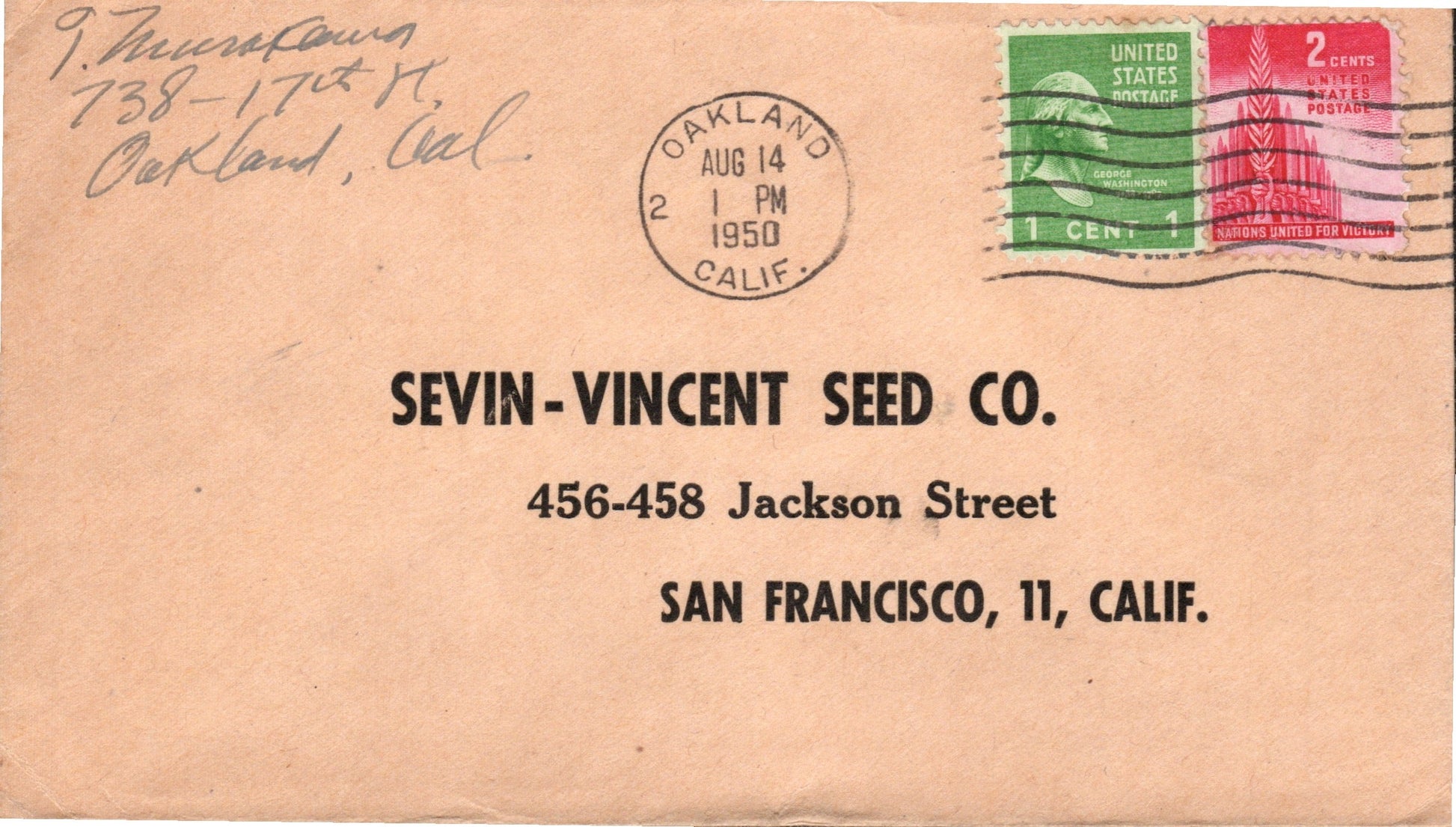 Oakland 1894 duplex 2 on Postal card; 1895 duplex on cover, corner “General Relief Committee I.O.O.F.”; 1912 machine slogan “World’s Panama-Pacific Exposition in San Francisco 1915”; 1920 machine cancel, “Justice’s Court” corner; 1922 machine slogan [incomplete] for Health Exposition in Oakland on cover including letter; 1932 machine cancel dial 3 on cover; 1937 machine cancel dial 2 on cover; 1937 machine cancel dial 3 on cover, “Perfect Fit Manufacturing Co.” corner; 1938 machine slogan “Air Mail Saves Time” on cover; 1942 machine slogan “Buy Defense Savings Bonds and Stamps” on window envelope, corner “Hap Alzina, Indian Motorcycles, Johnson Outboard Motors”; 1948 machine cancel on cover; 1949 machine cancel dial 5 on cover; 1950 machine cancel dial 2 on cover; 1952 duplex on cover; 1952 machine cancel dial 4 on cover; 1962 machine cancel dial 3 on cover; 1965 (3 diff. machine dials, 2 of which are overstruck); 1969 4-bar on cover