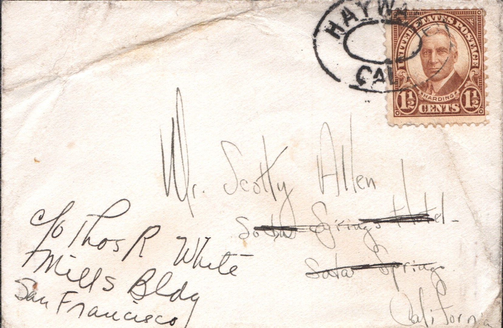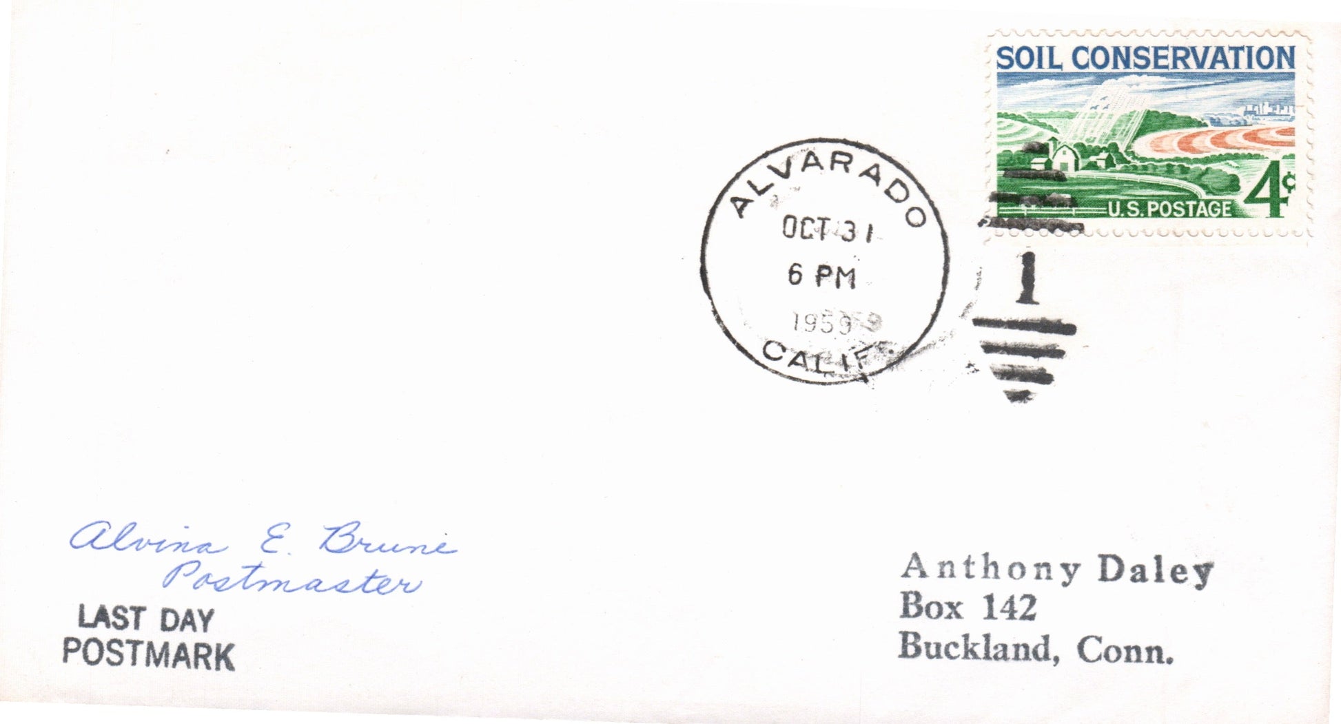 Hayward 1915 date-out duplex on post card; 1933 oval on small cover, Soda Springs CA backstamp; 1967 machine slogan “Always Use Zip Code” on cover