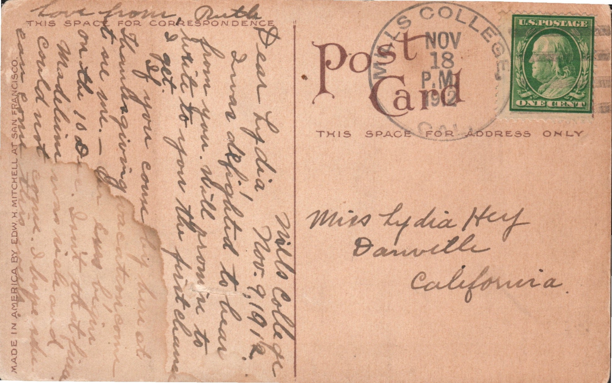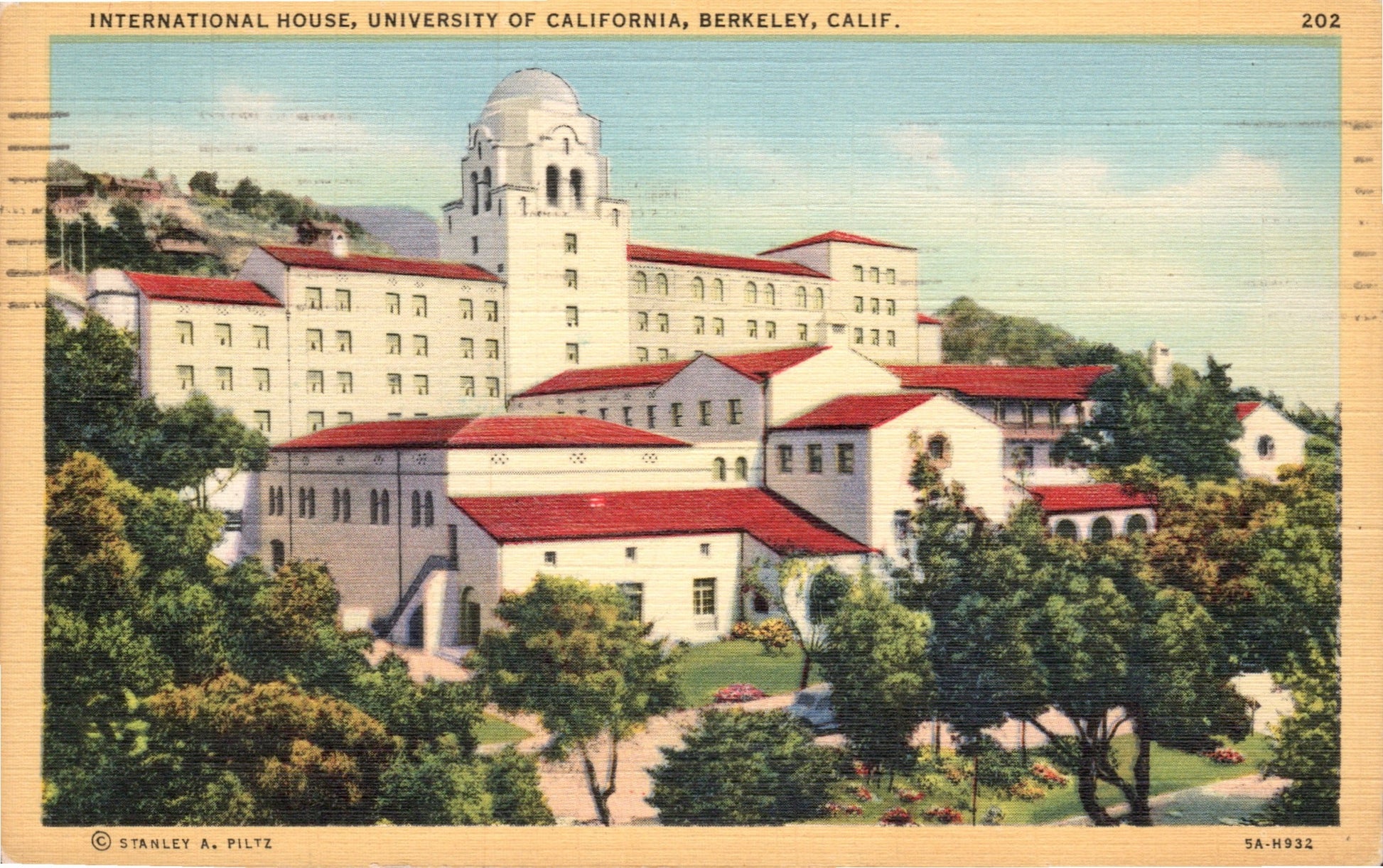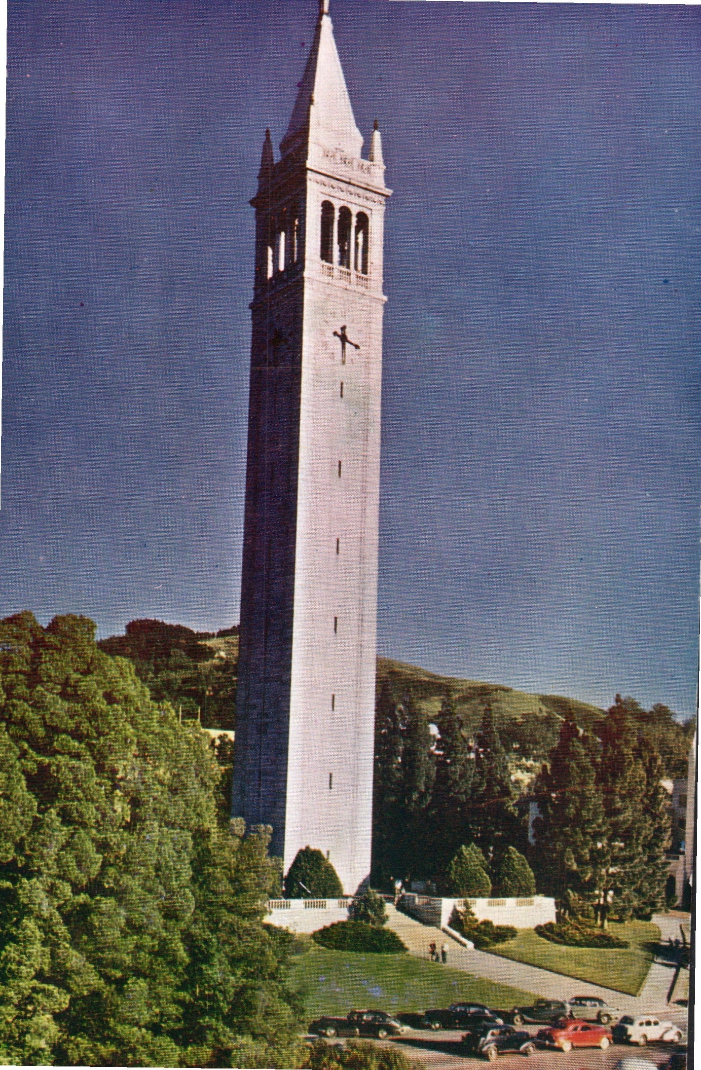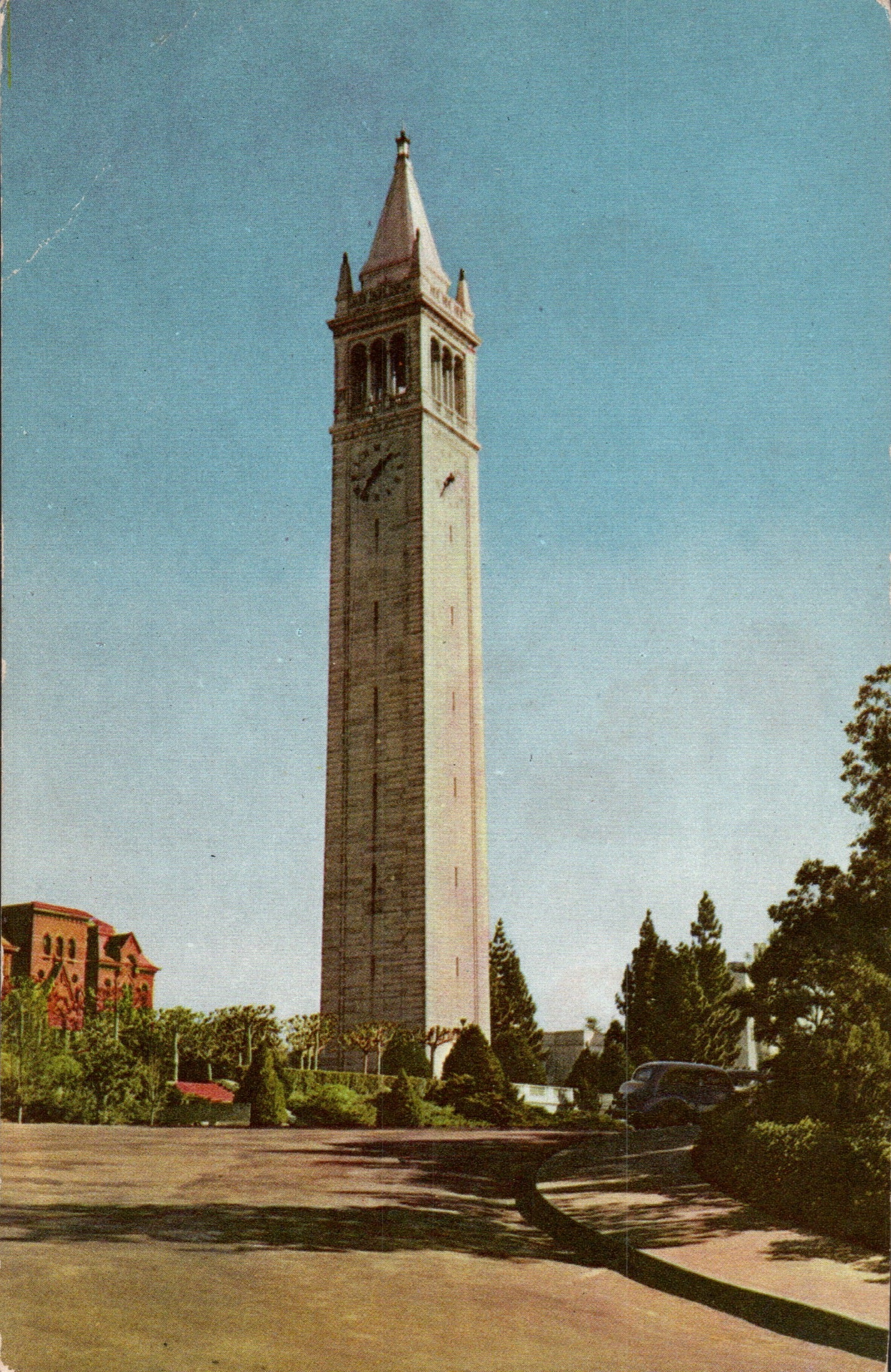 Post cards: “Telegraph Avenue and Bancroft” on post card [white border, 1930s]; Univ. of Calif. 8 campus scenes [1 sepia, 1 real photo, 3 linen, 3 chrome]