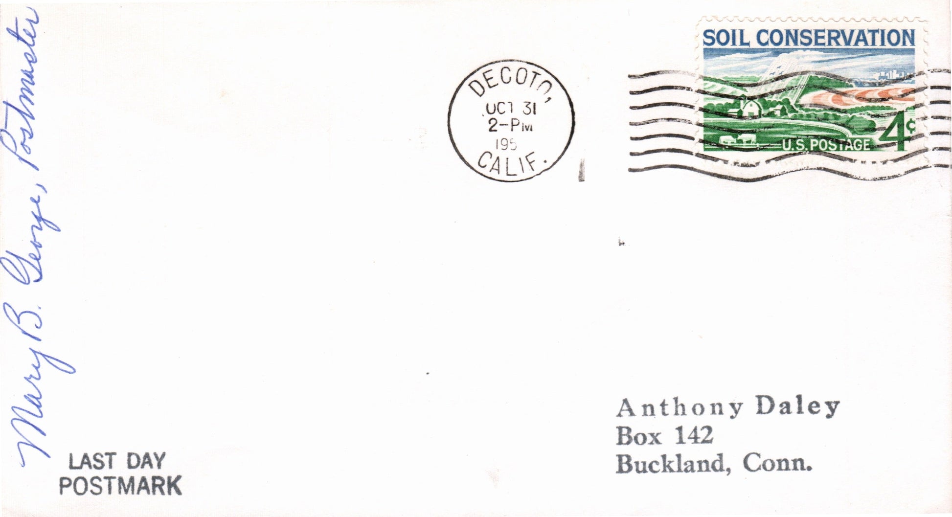 Decoto (1871-1959) 1911 4-bar on post card; poor 1959 double circle on 3x5 card; 1959 machine cancel on LD cover, PM autograph