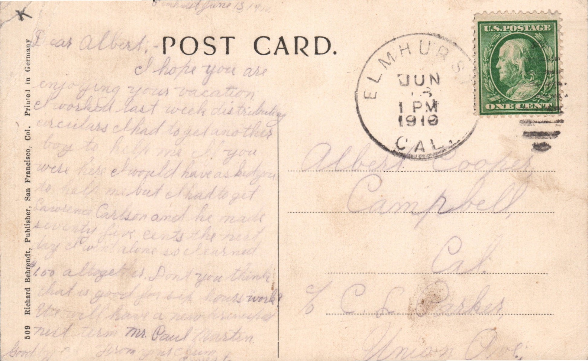 Elmhurst (1892-1911) 1910 duplex on post card [nice view of Dunsmuir]
