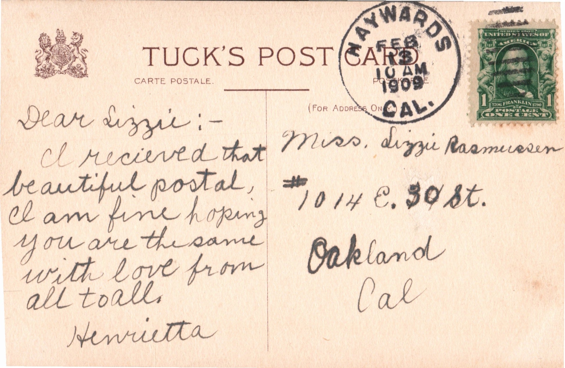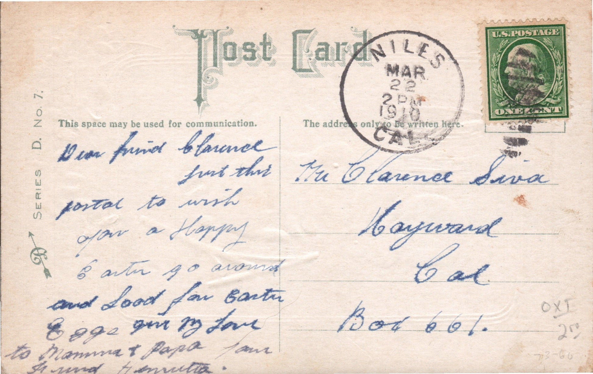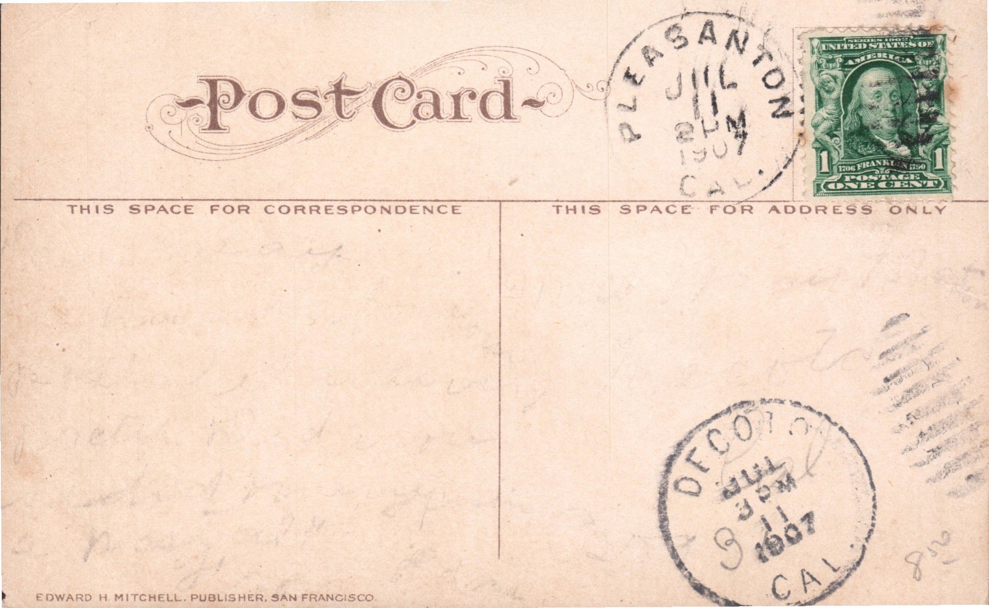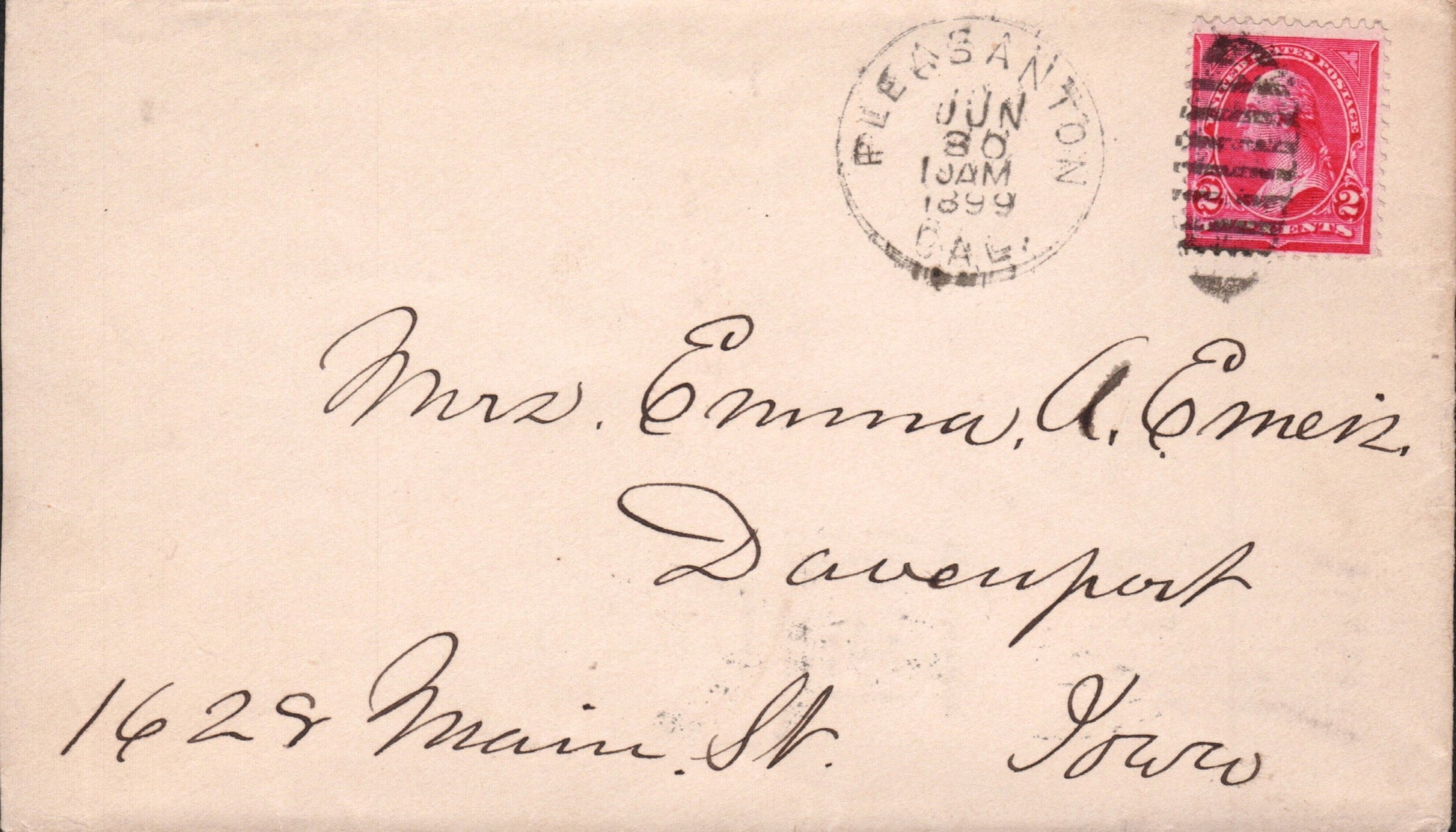 Pleasanton 1899 duplex on cover; 1907 duplex on post card, also Decoto duplex as rec’d