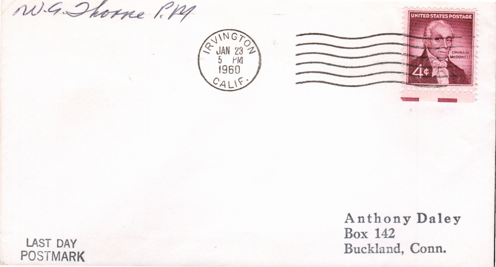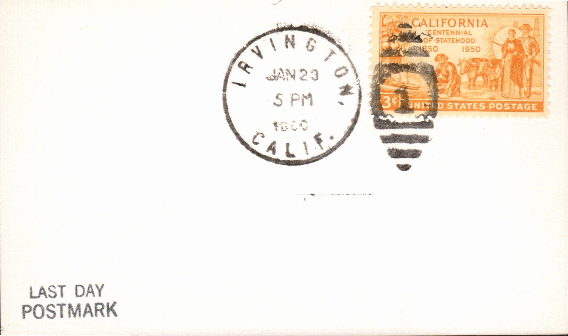 Irvington (1887-1960) 1907 duplex overstruck Oakland machine cancel on post card; 1960 duplex on LD 3x5 card; 1960 machine cancel on cover