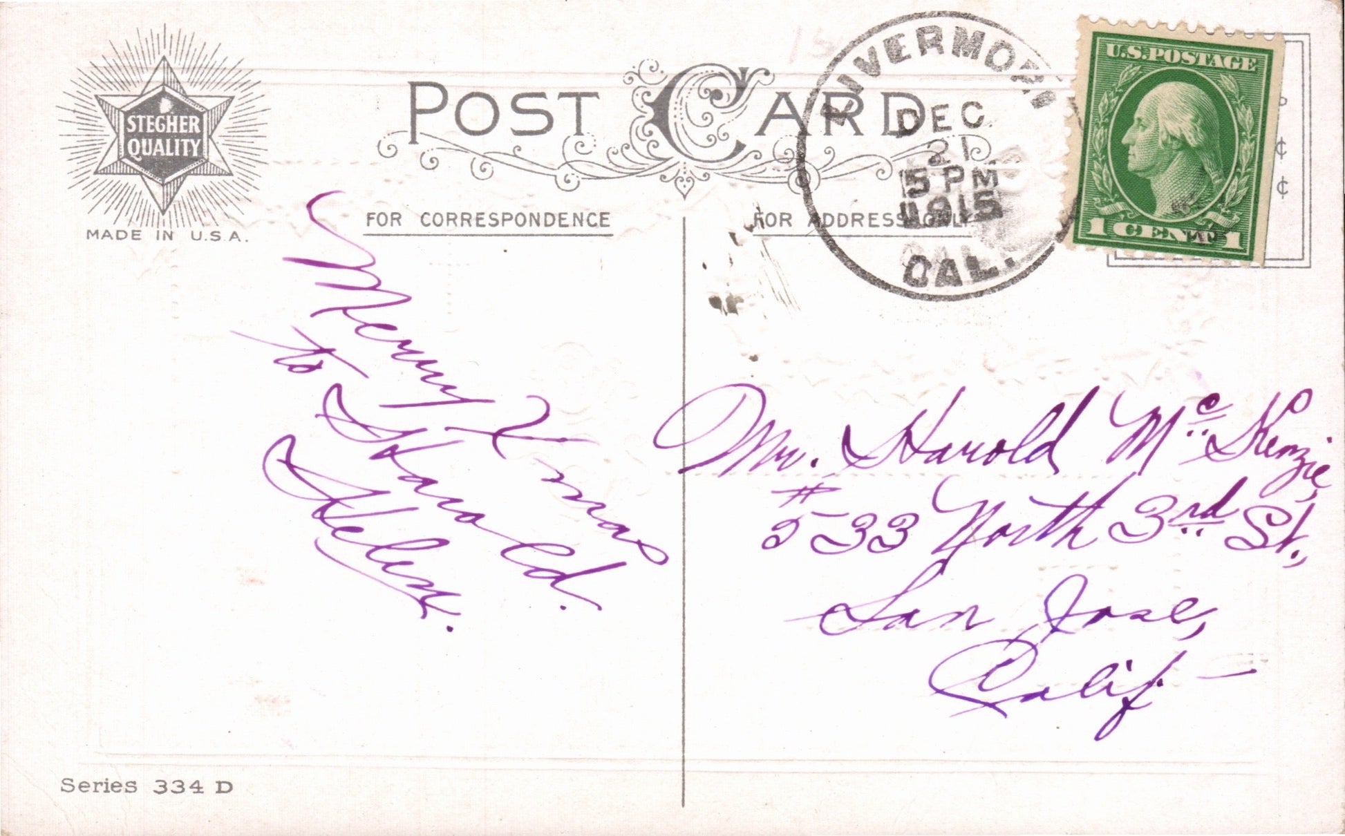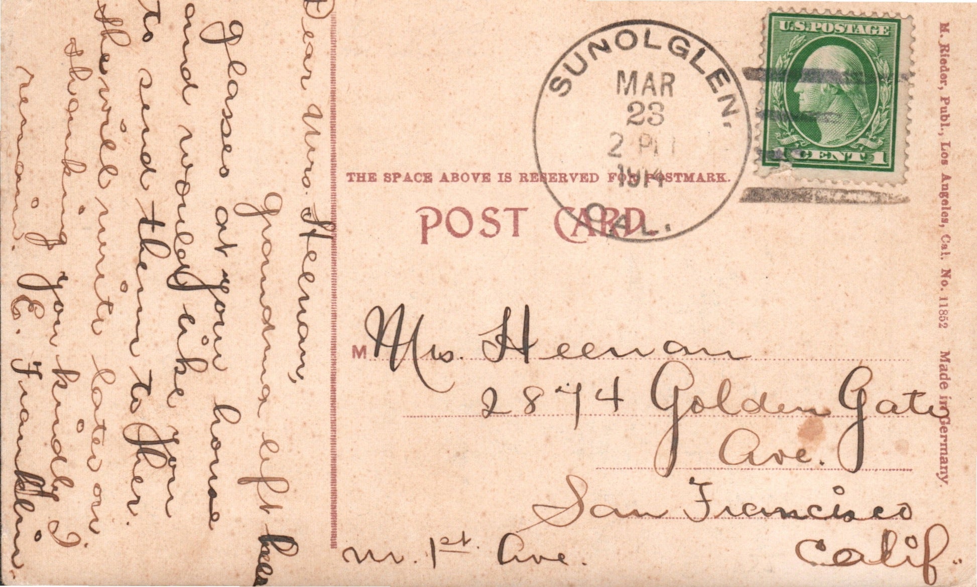 Sunolglen (1871-1920) 1914 4-bar on post card