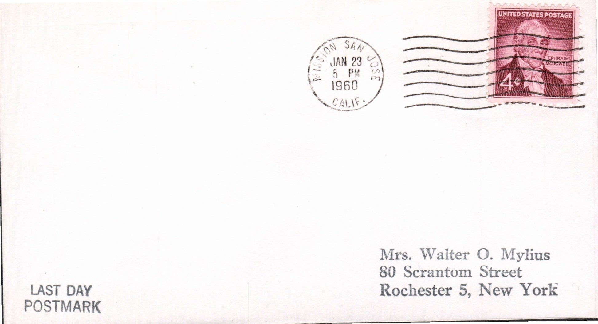 Mission San Jose (1850-1960) 1959 machine cancel on LD cover