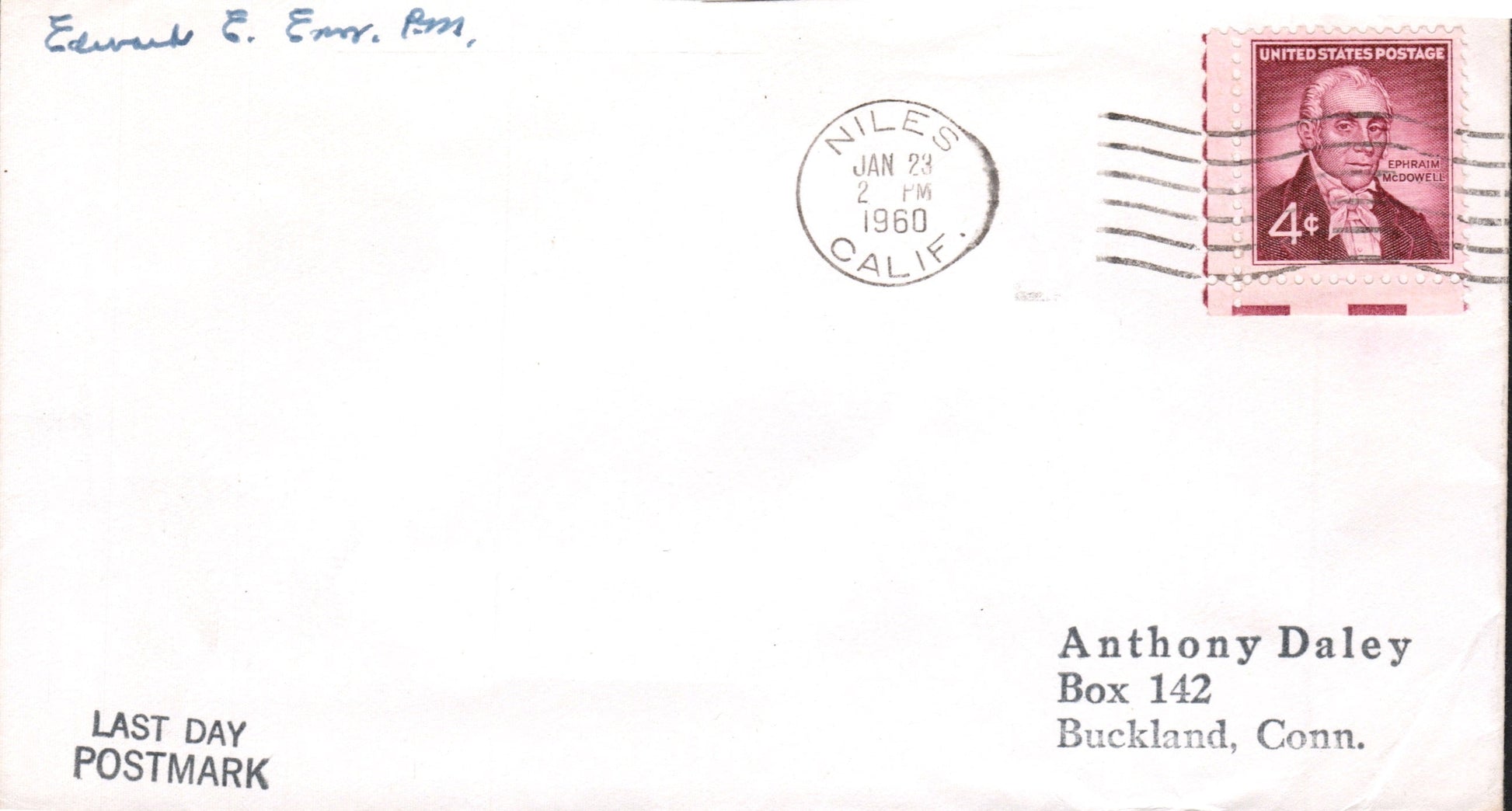 Niles (1873-1960) 1910 duplex on post card; 1960 machine cancel on LD cover