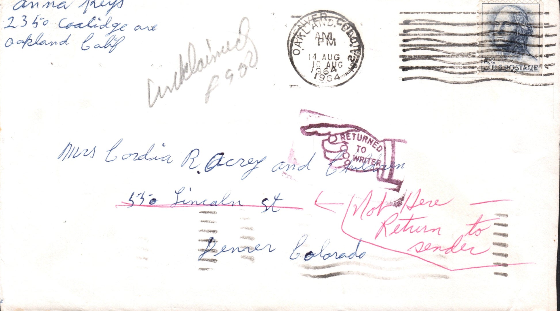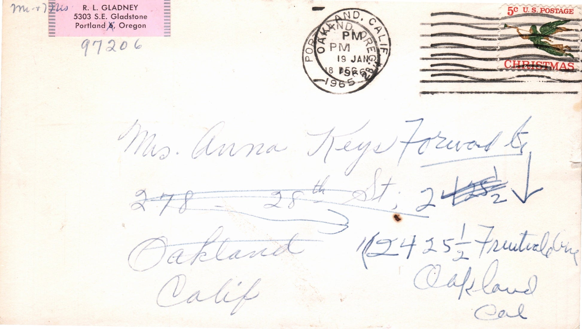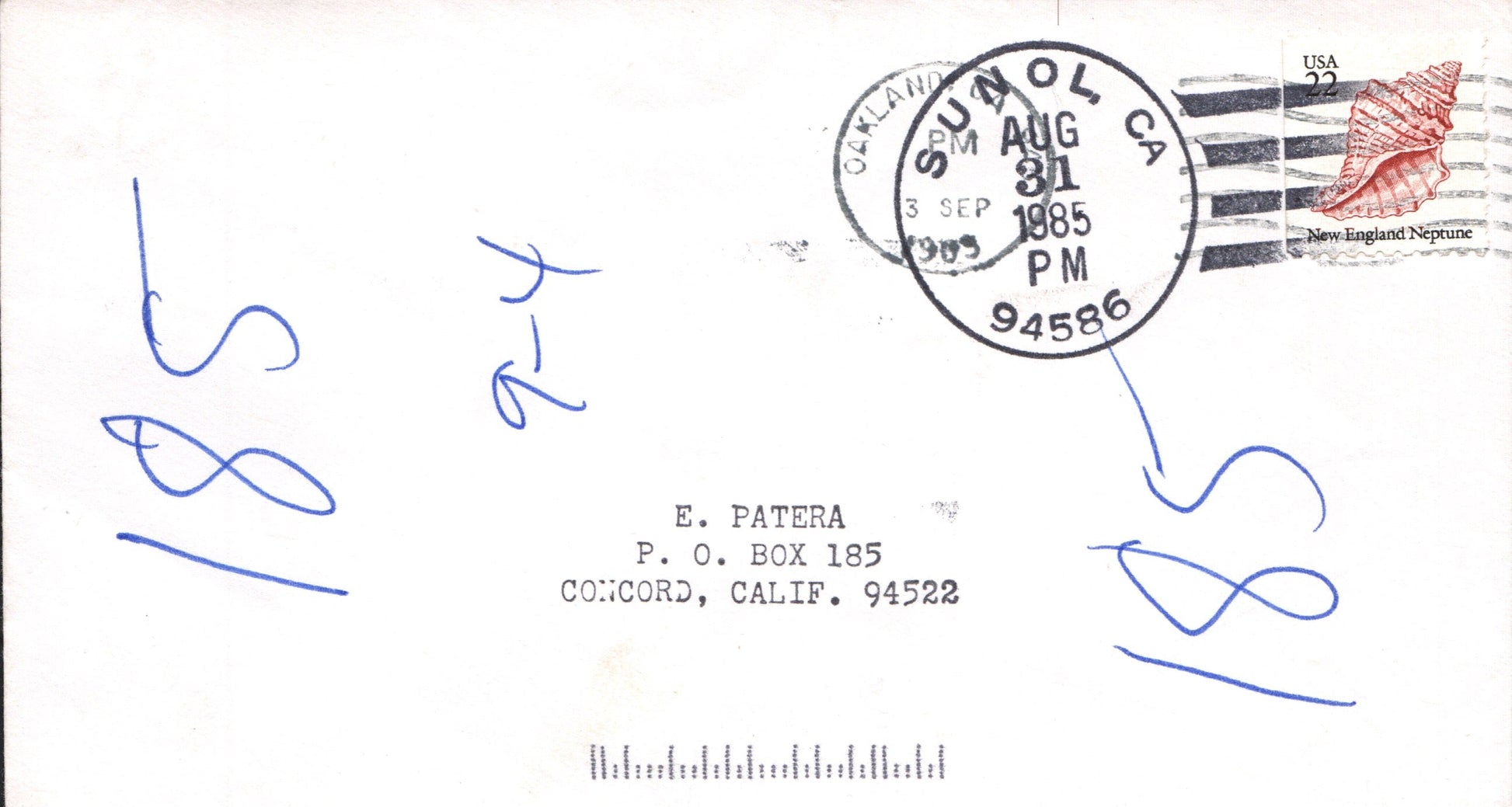 Sunol 1985 4-bar [overstruck Oakland] on cover