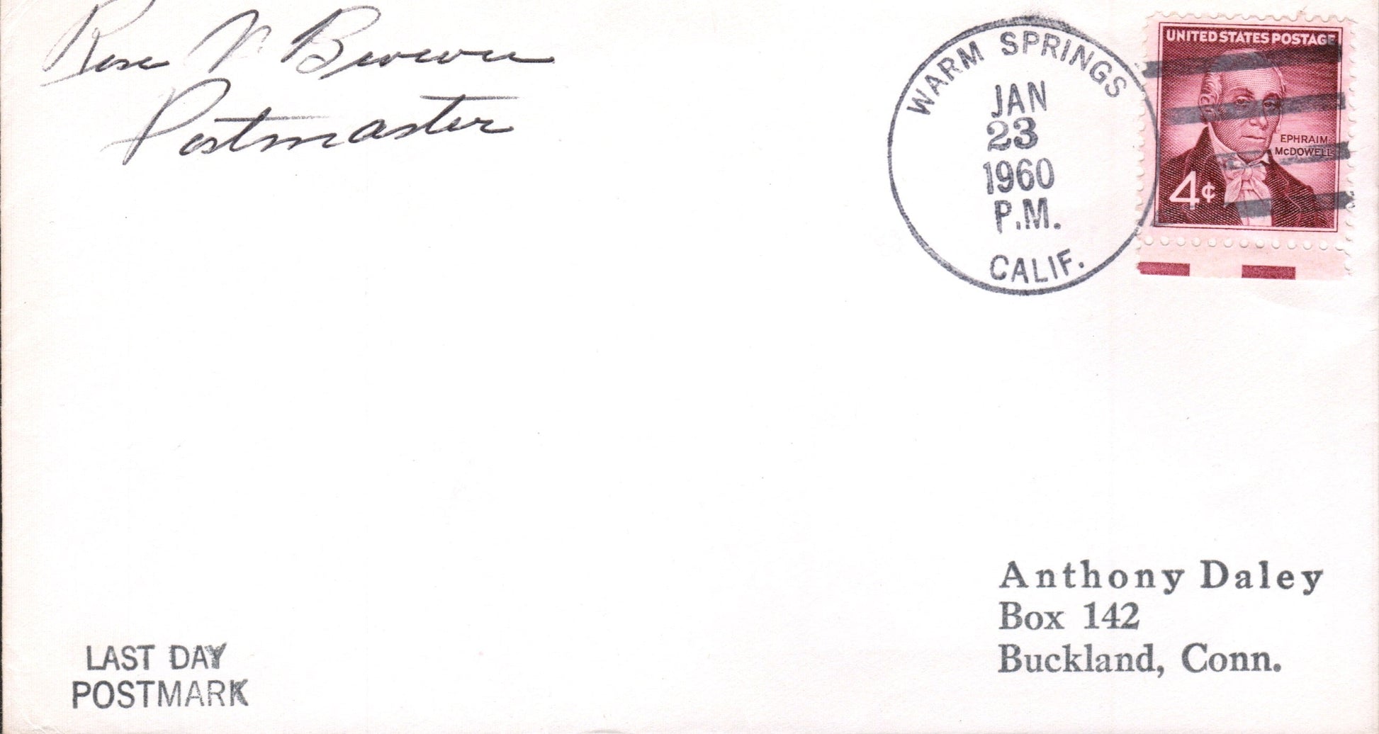 Warm Springs (1885-1960) 1960 4-bar on LD cover, PM autograph