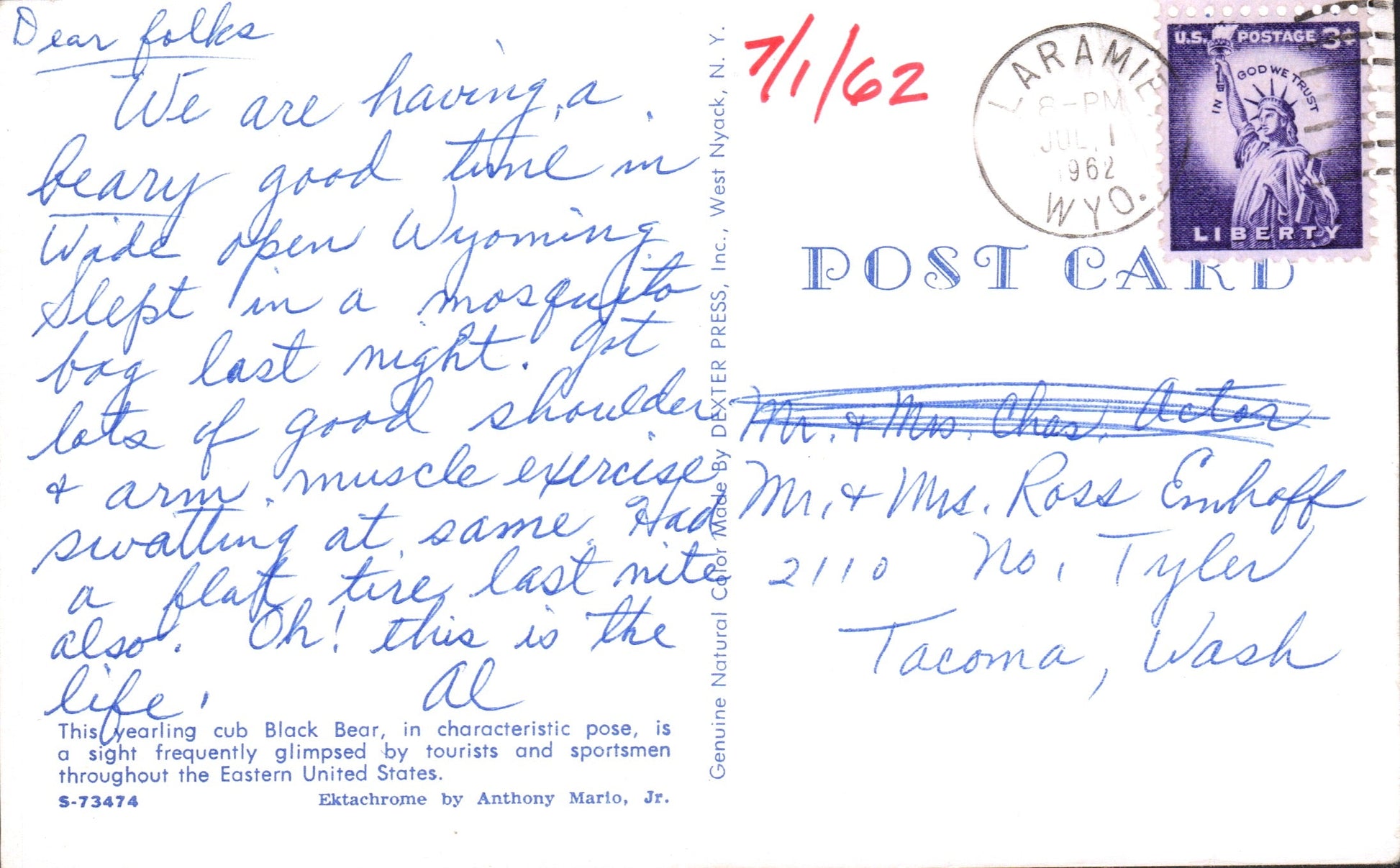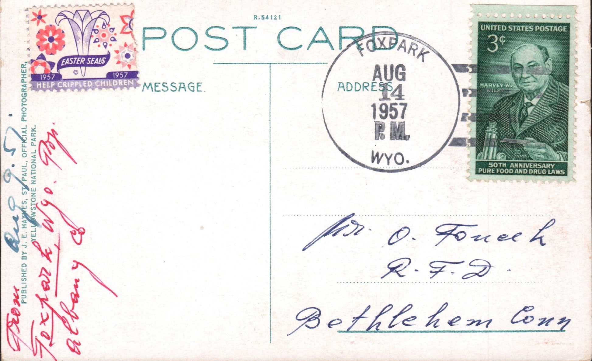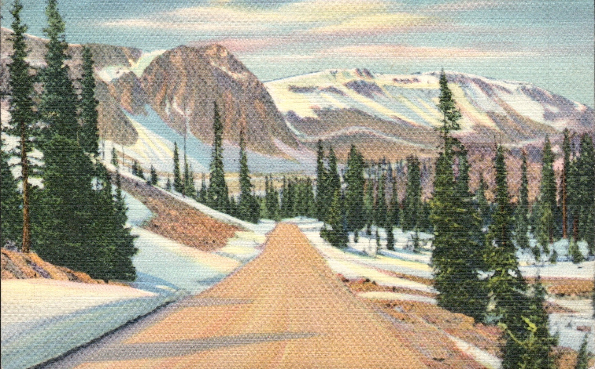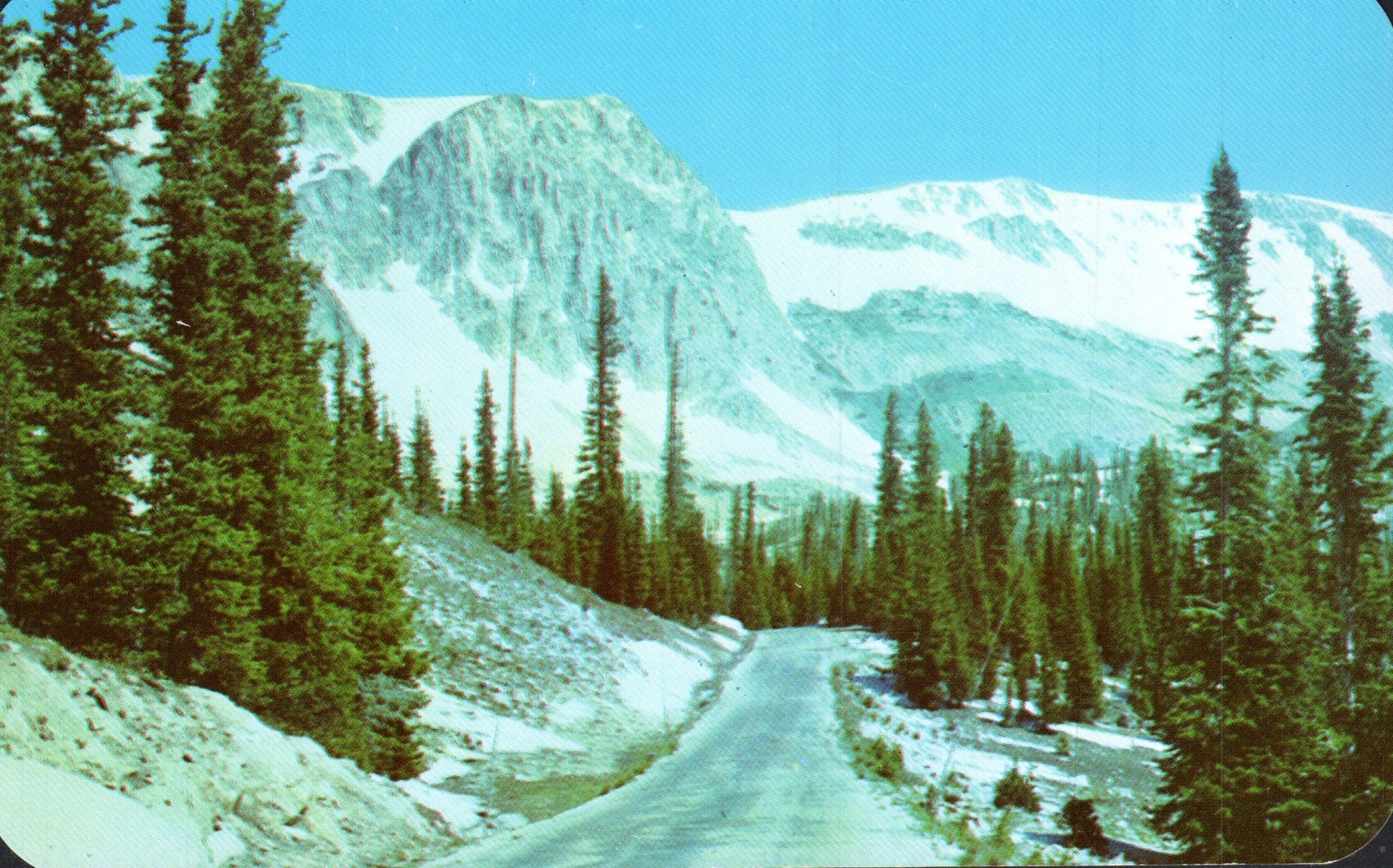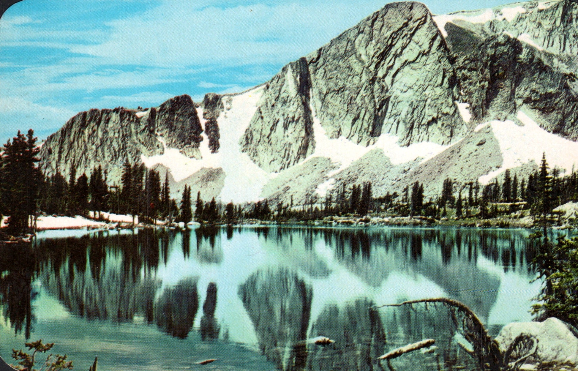 Post cards: “Ames Monument” [linen, S#908]; “Tree Growing Out of Solid Rock” [linen, S#927]; “Lone Tree, Sherman Hill” [1930s] “Elk Mountain” [linen, S#916]; “Guernsey Lake” [linen, S#1108]; View from Sherman Hill (S#993 “Laramie Peak” [2 linen, S#996, different coloring]; “Snowy Range” [linen]; “Highway and Lake over Snowy Range” [linen, S#924]; “Highway through the Snowy Range” [linen, S#1217]; “Brooklyn Lake” [linen, S#1119]; “Lake Marie” [linen]; “Lake Marie and Snowy Range” [linen, S#918]; “Lake Marie ” [chrome]; “Mirror Lake” [chrome, S#3912]; “Silver Lake” [chrome, S#3997]; “Highway No. 130 over the Snowy Range” [chrome, S#3996]