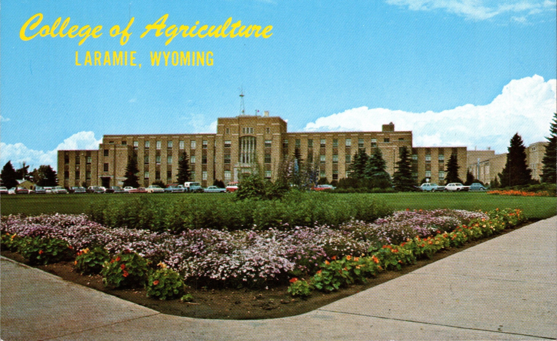 Post cards: “Wyoming Court” Motel [linen]; U. of Wyo. Liberal Arts Building [linen, Sanborn #1109]; U. of Wyo. College of Agriculture [chrome]; U. of Wyo. Ross Hall [chrome]