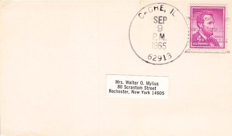 - Cache 1963 4-bar on cover; 1965 4-bar on 3x5 card