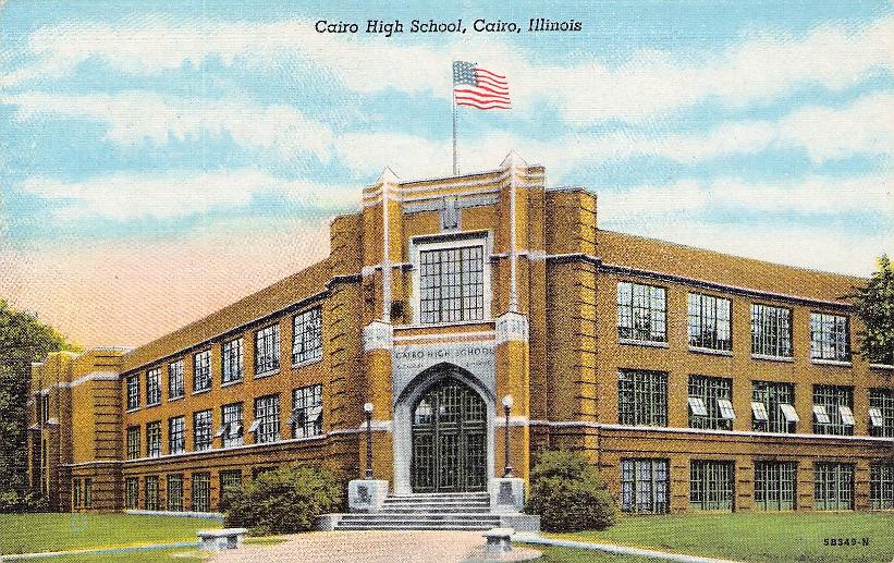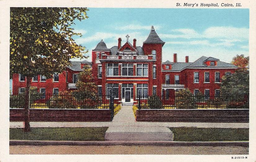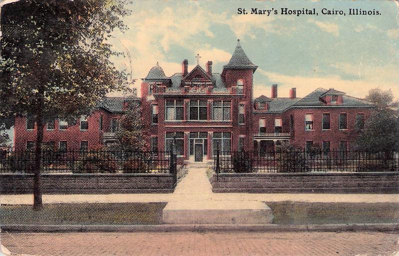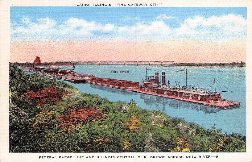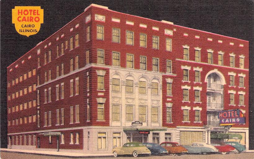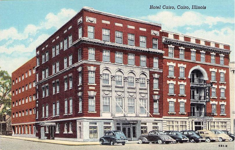 - Post cards: Hotel Cairo [2 linen views]; City Motel [linen]; Morse Motel [linen]; St. Mary’s Hospital [2 views, one 1912, one linen]; Alexander County Court House [chrome]; High School [linen]; Magnolia Manor [chrome]; Riverboatmen’s Observation Tower [chrome]; Federal Barge Line [linen]; Illinois Central Bridge [B&W]
