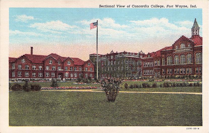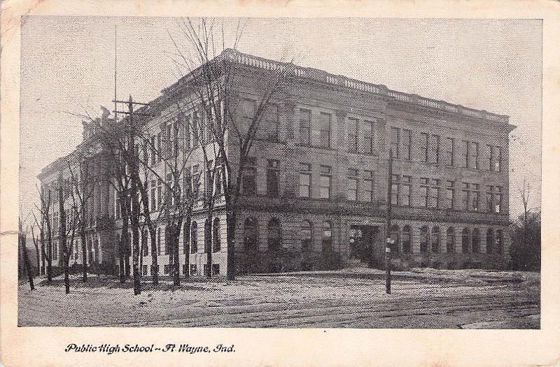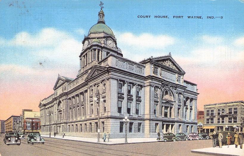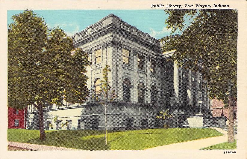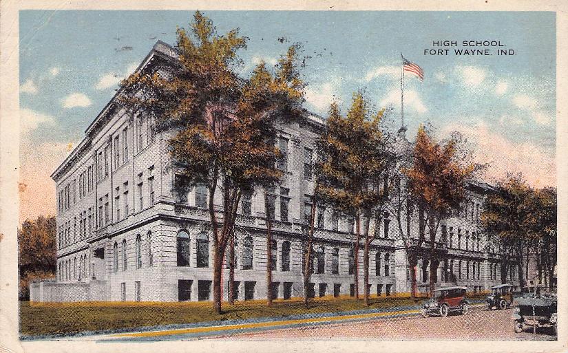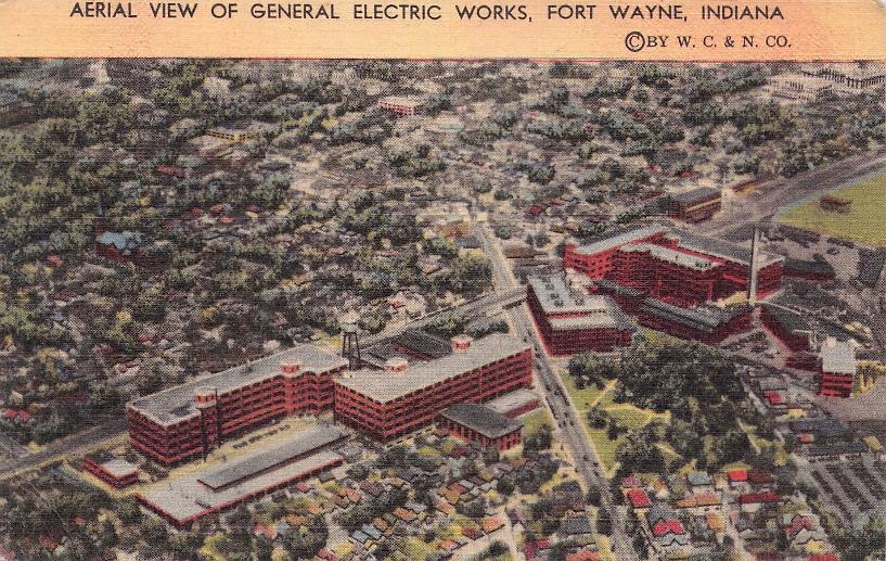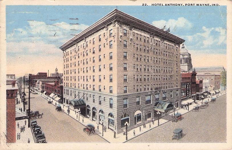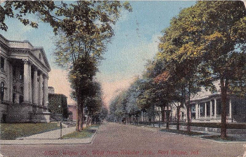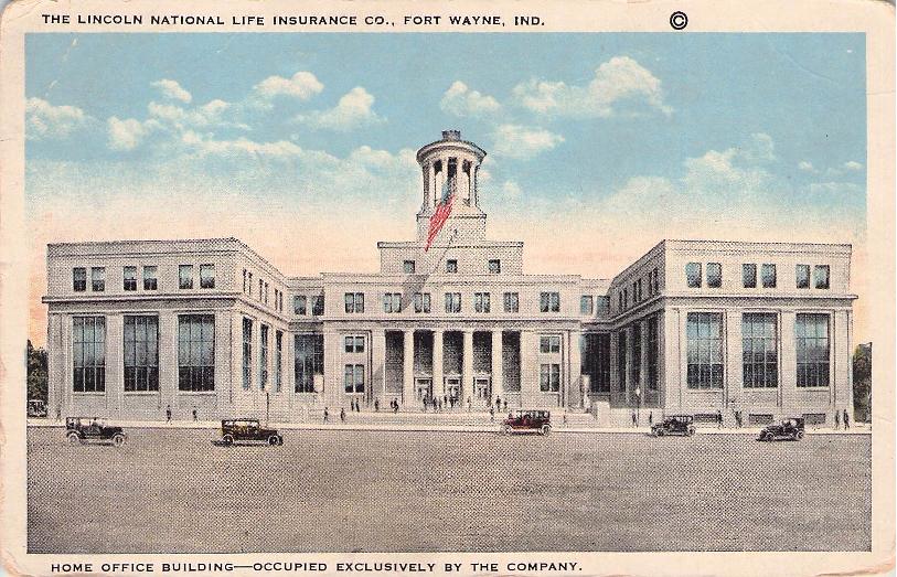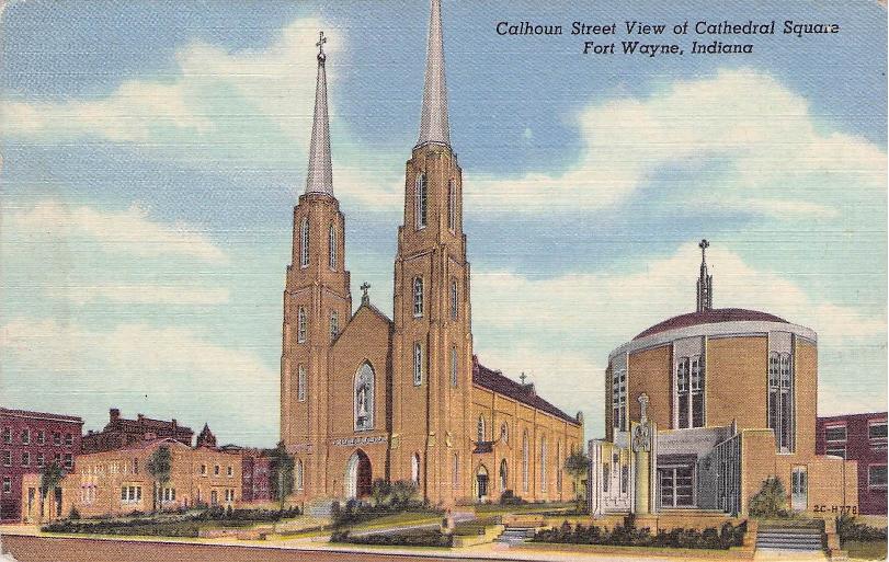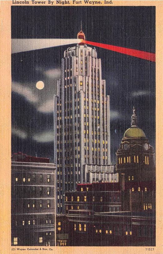 Post cards: “Lincoln Tower By Night” [linen]; “Wayne St. west from Webster” [1912]; Sears Robuck store [chrome, c.1955]; Lincoln National Life Insurance Home Office [c.1930]; Gerber Haus Motor Hotel [chrome]; Johnny Appleseed Motel [chrome]; Hoosier City Tourist Camp [B&W, c.1930]; Pagoda Inn (restaurant) [chrome]; St, Joseph’s Hospital [chrome]; Coca Cola Bottling Works [c.1941]; General Electric Plant, aerial view [linen]; 2 Harvester Tower [linen, one 1951]; Parkview Hospital [chrome]; Court House [linen]; Library; 3 High School views [1906 B&W,1907,1917]; Concordia College [linen]; 3 views of Theological Seminary, all Continental size; Cathedral Square [linen]; Masonic Cathedral [c.1925]; Bethlehem Lutheran Church [chrome]; reconstruct of historic Ft. Wayne [chrome]; Bass residence [1908; 3 park scenes [all linen]