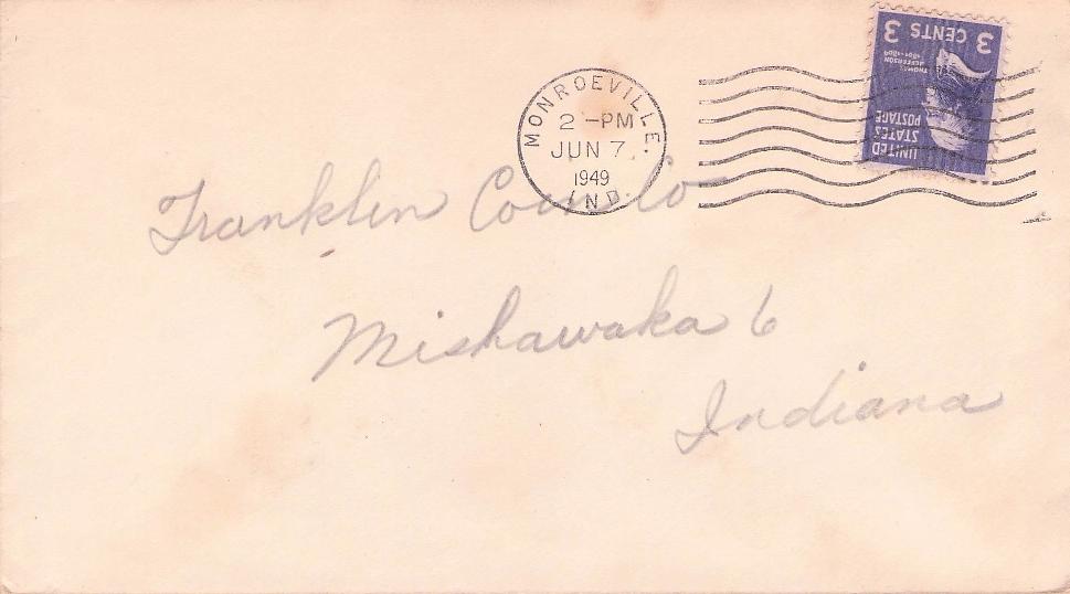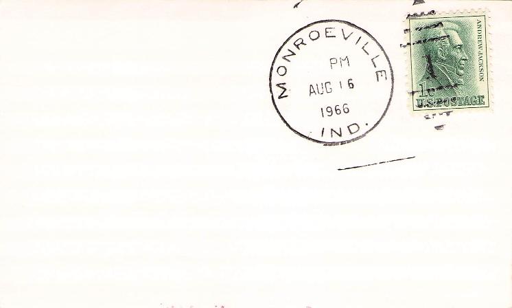 Monroeville 1909 Dane on post card; 1949 machine cancel on cover; 1966 duplex on 3x5 card