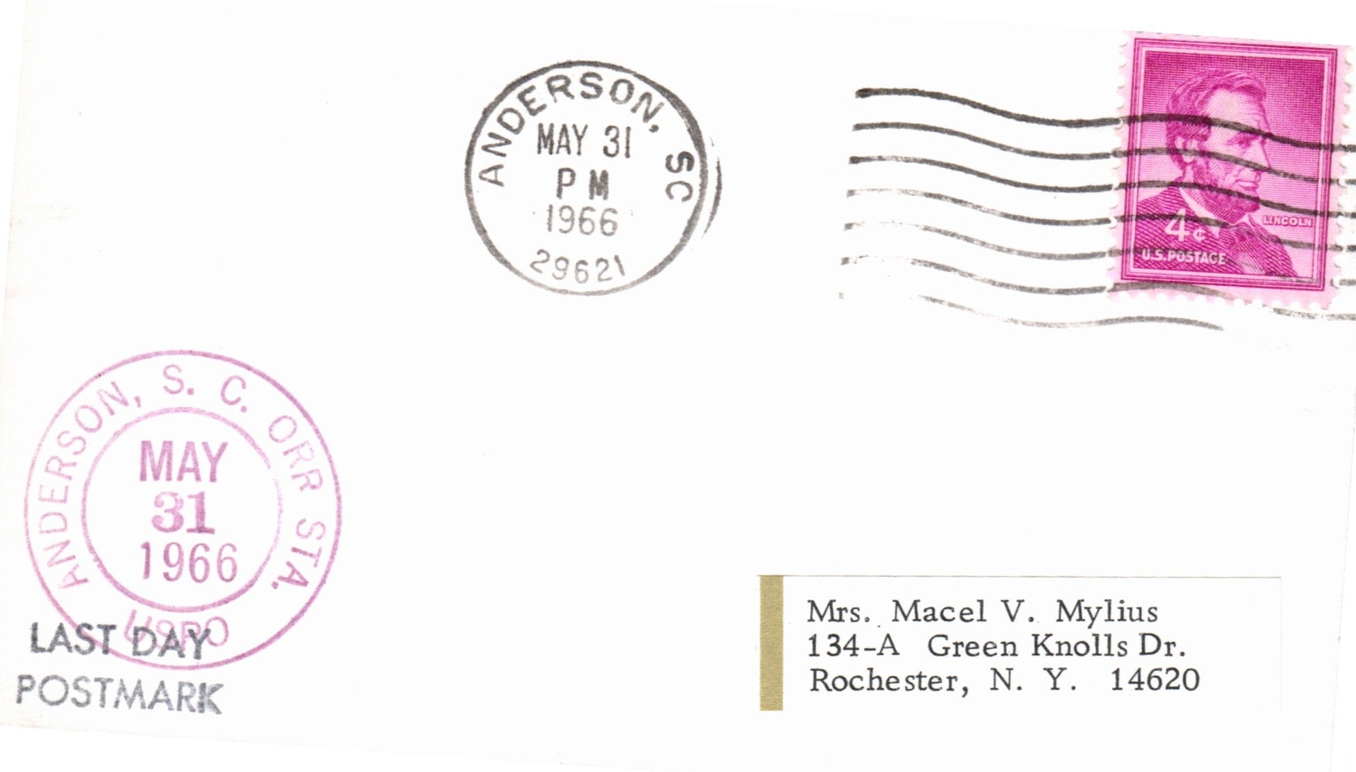 South 1966 4-bar on FD [of postal status] cover-sized card, round dater on back