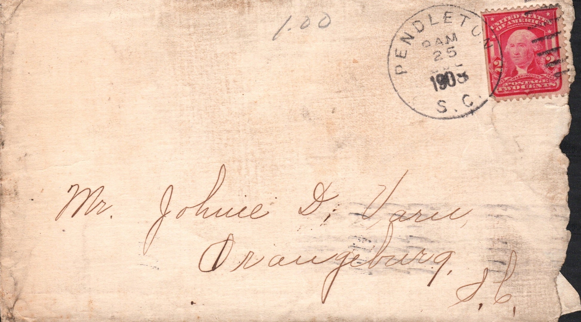 Pendleton 1884 cds and target killer on cover; 1908 duplex on worn cover