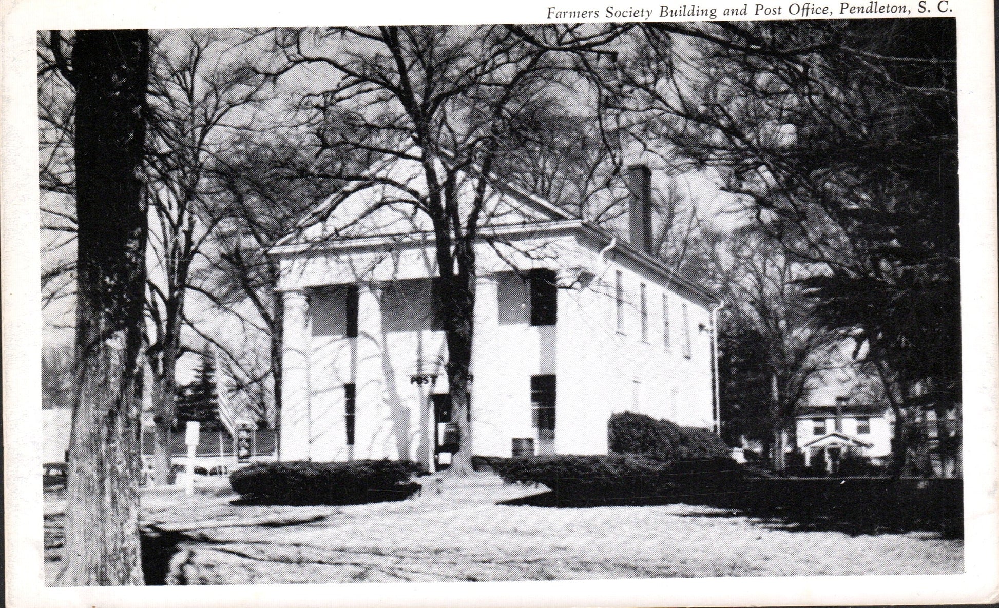 Post card: “Farmers Society Building and Post Office” [B&W]
