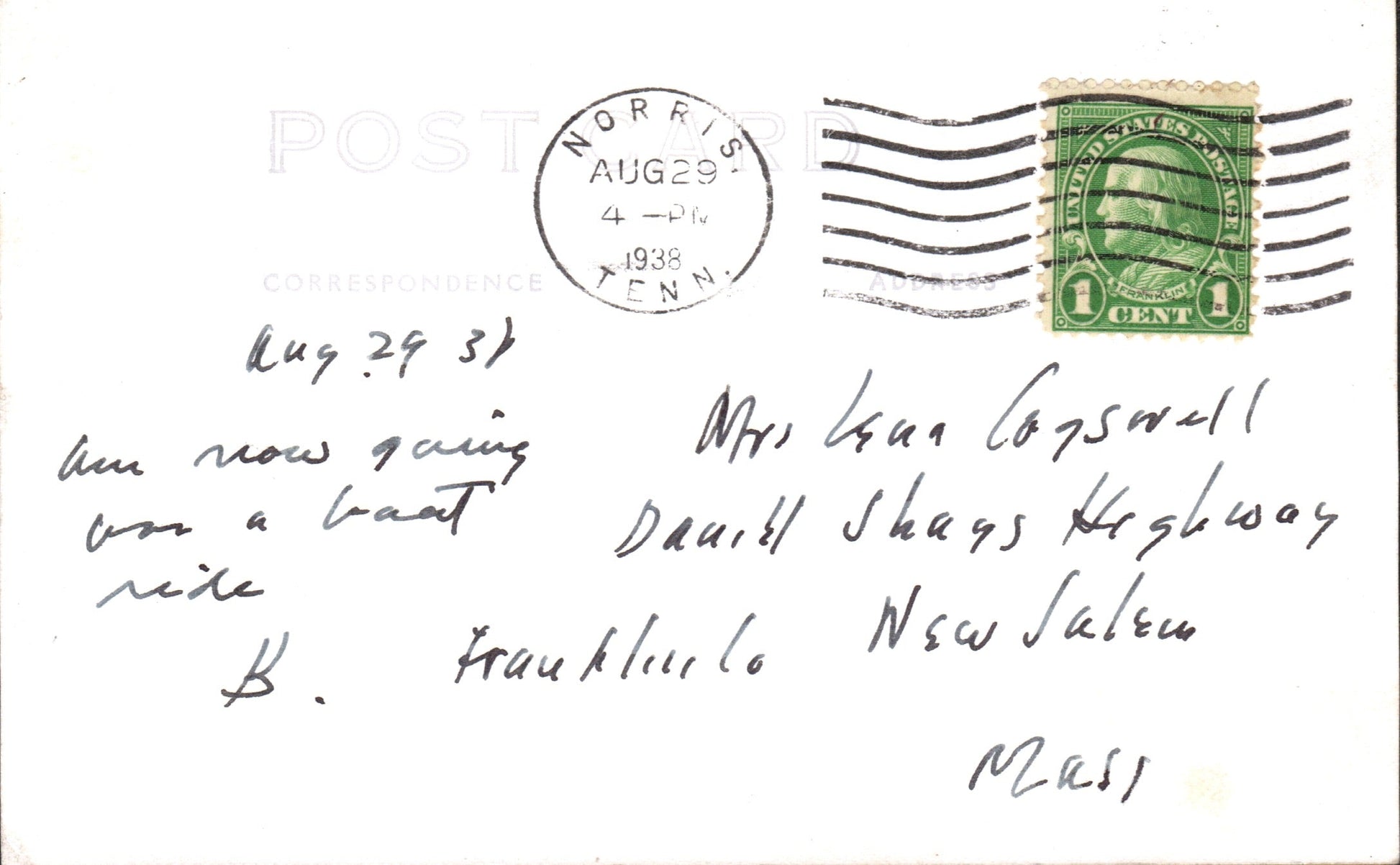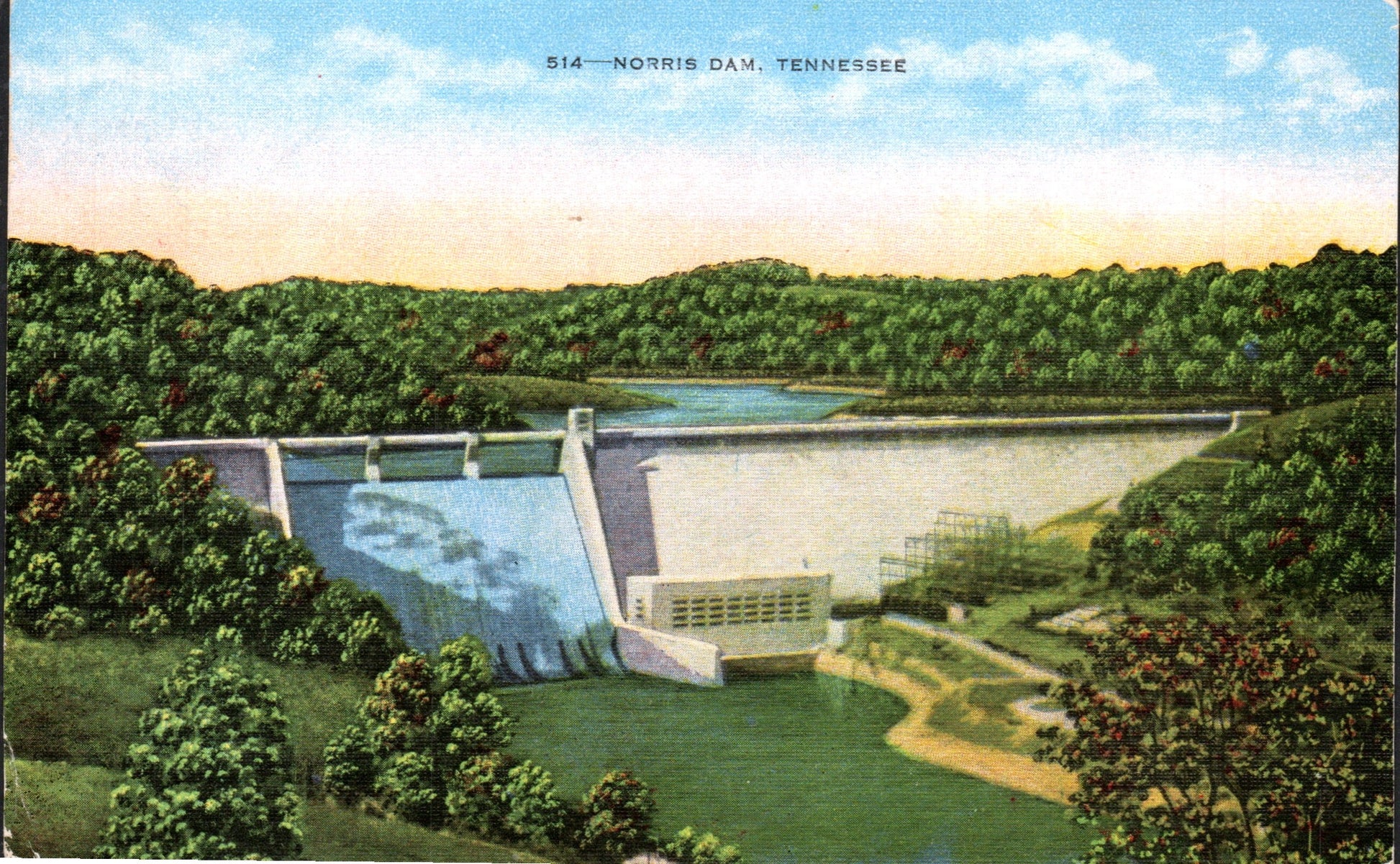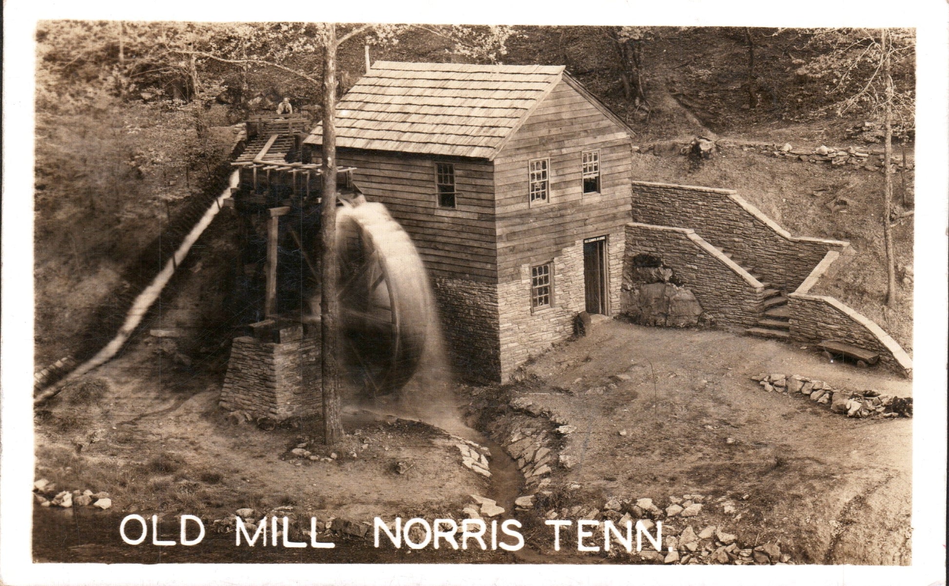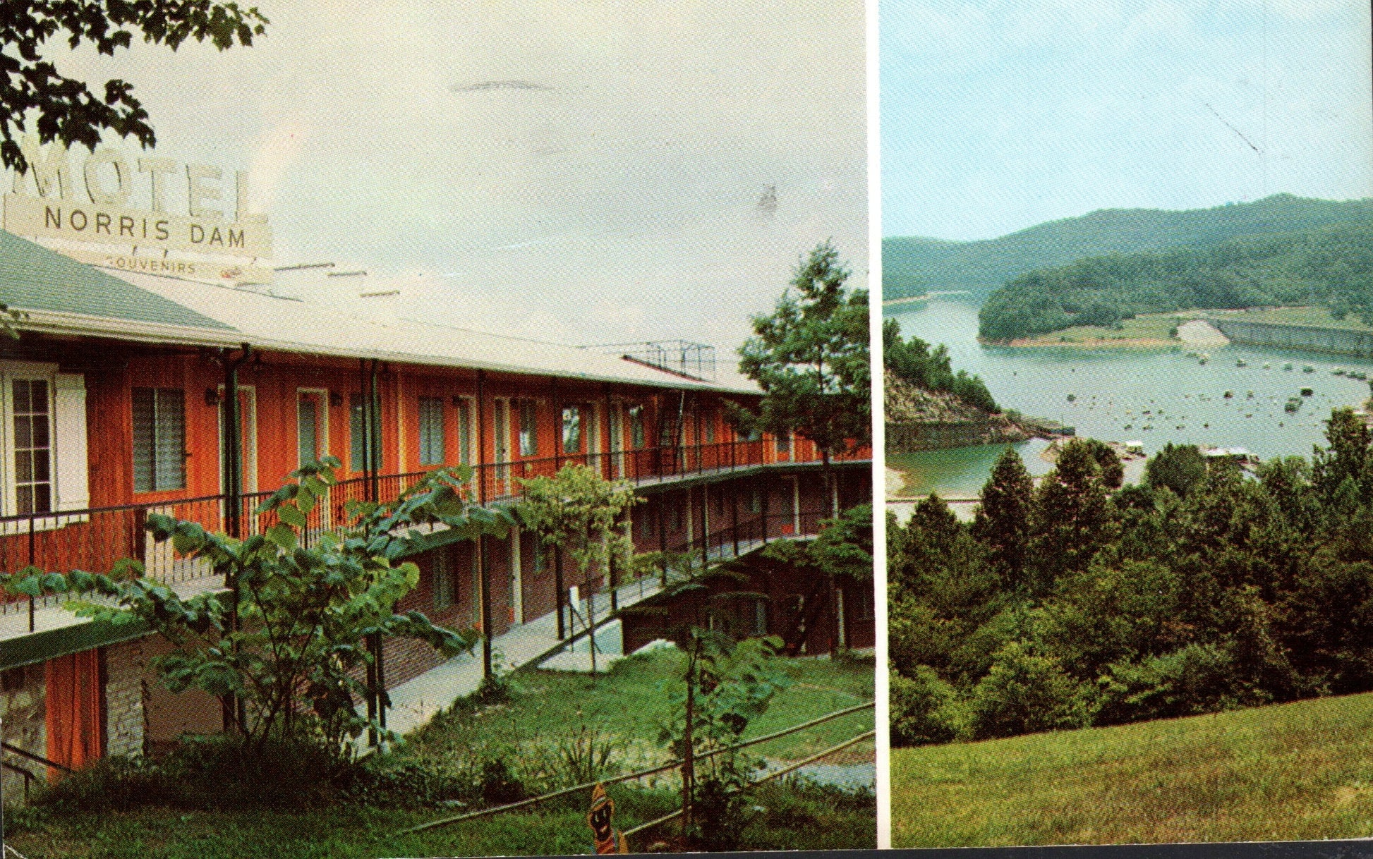 Post cards: Norris Dam Motel [2 views, one with dam, both chrome]; Houseboats on Norris Lake [chrome]; Norris Dam [linen]; 18th Century Grist Mill [4 real photo views, one of which is interior]