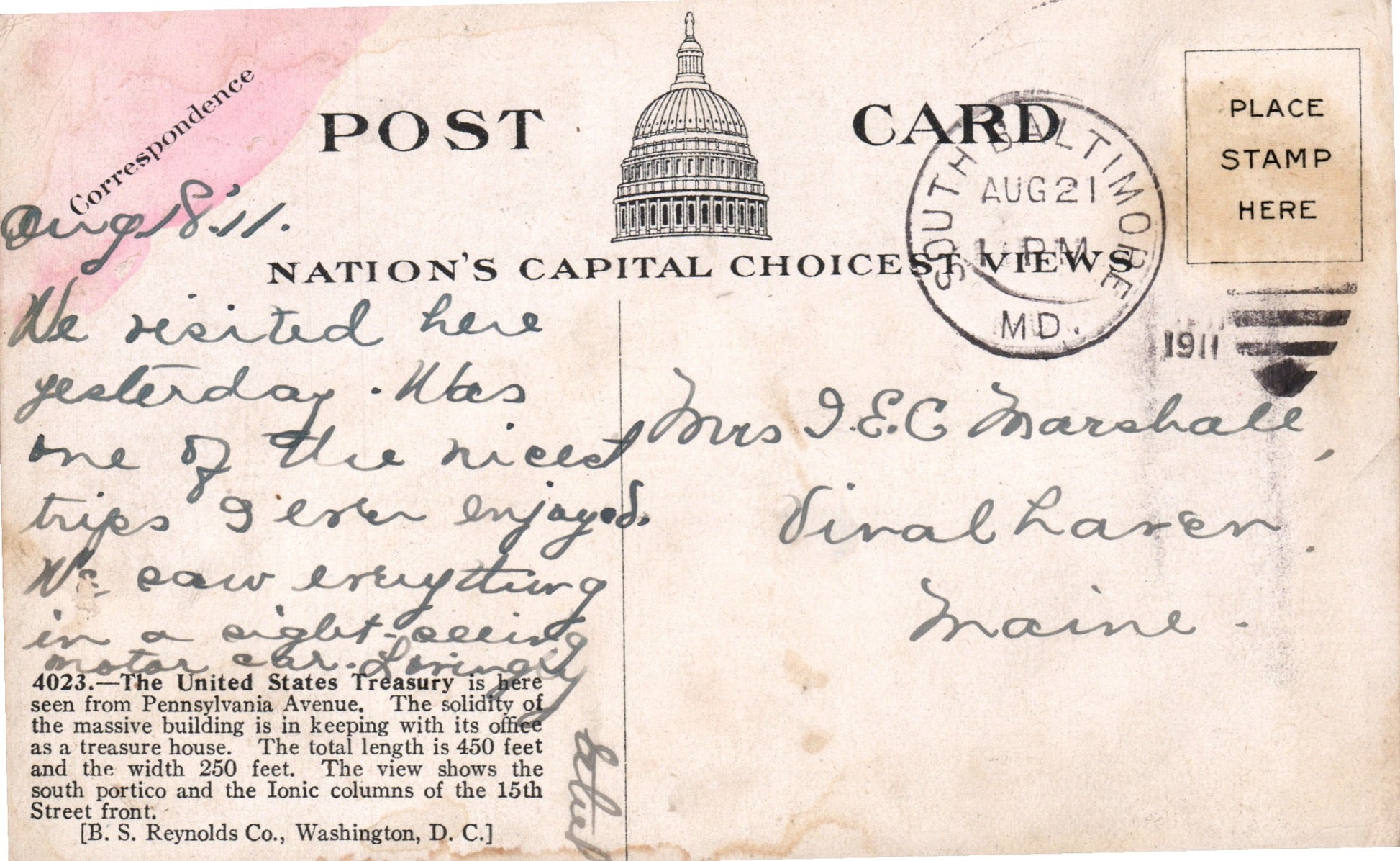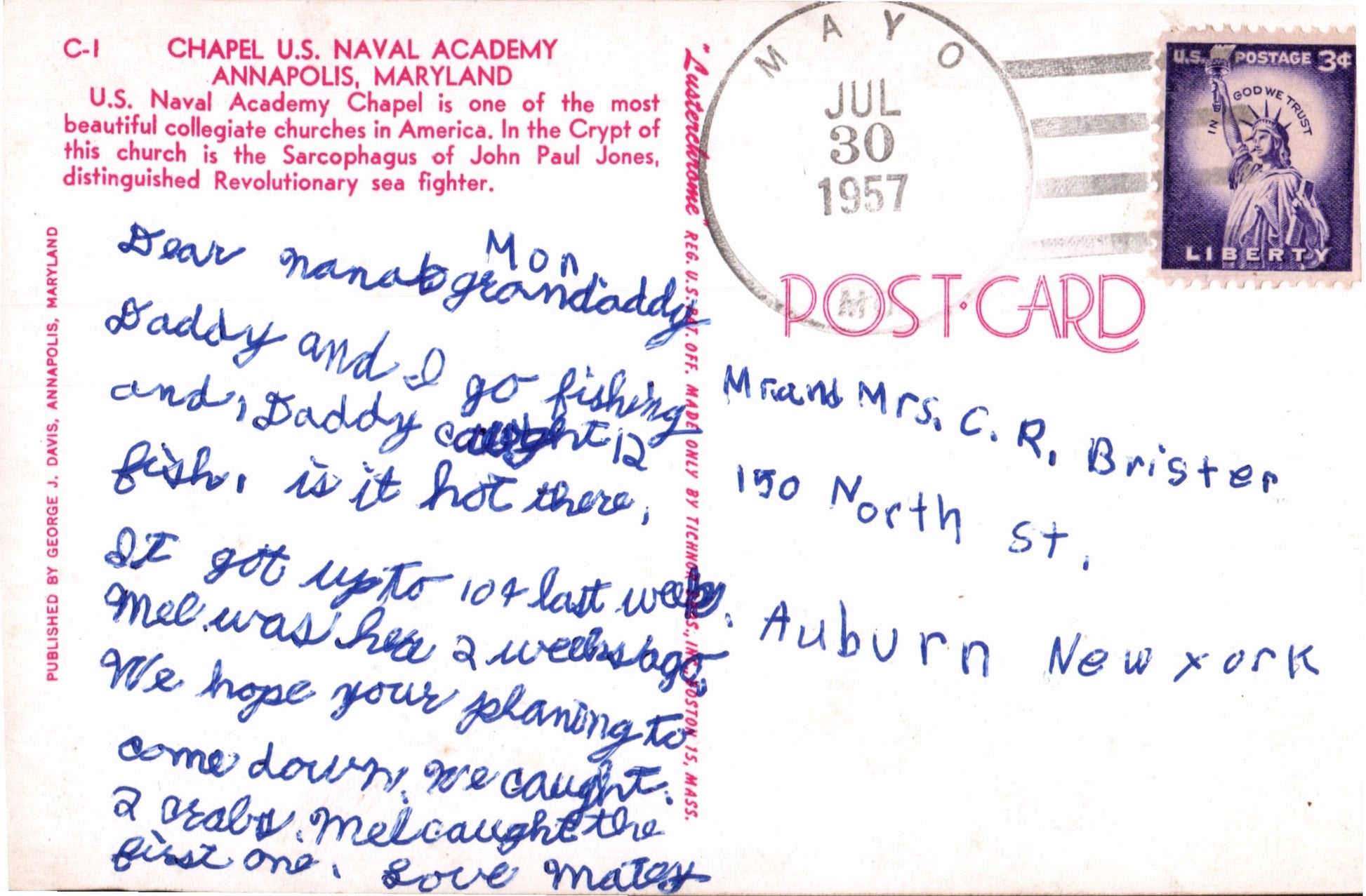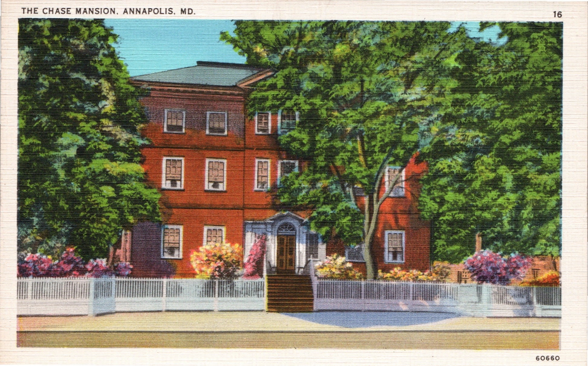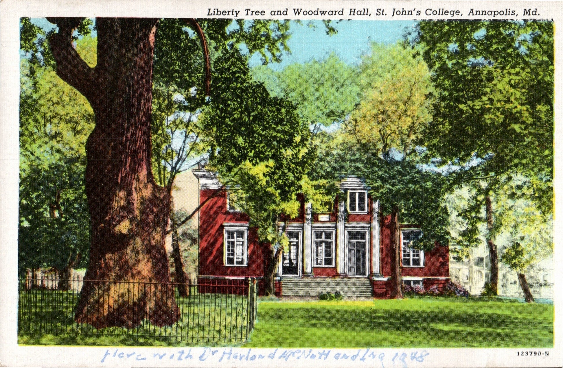 Post cards: Carvel Hall Hotel [c.1930]; Sherwood Hall [c.1930]; Tecumseh statue [chrome]; Chase Mansion [linen]; Carvel Hall [B&W]; “Liberty Tree and Woodward Hall, St. John’s College” [linen]; State Capitol [2 linen views]; Governor’s House [chrome]
