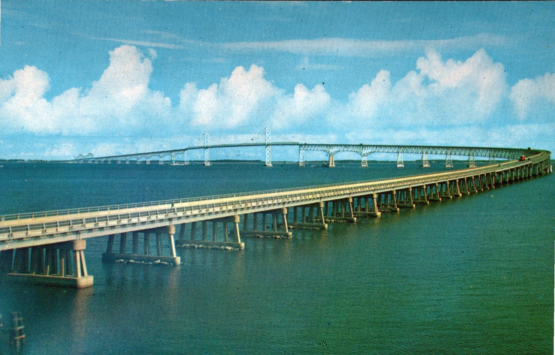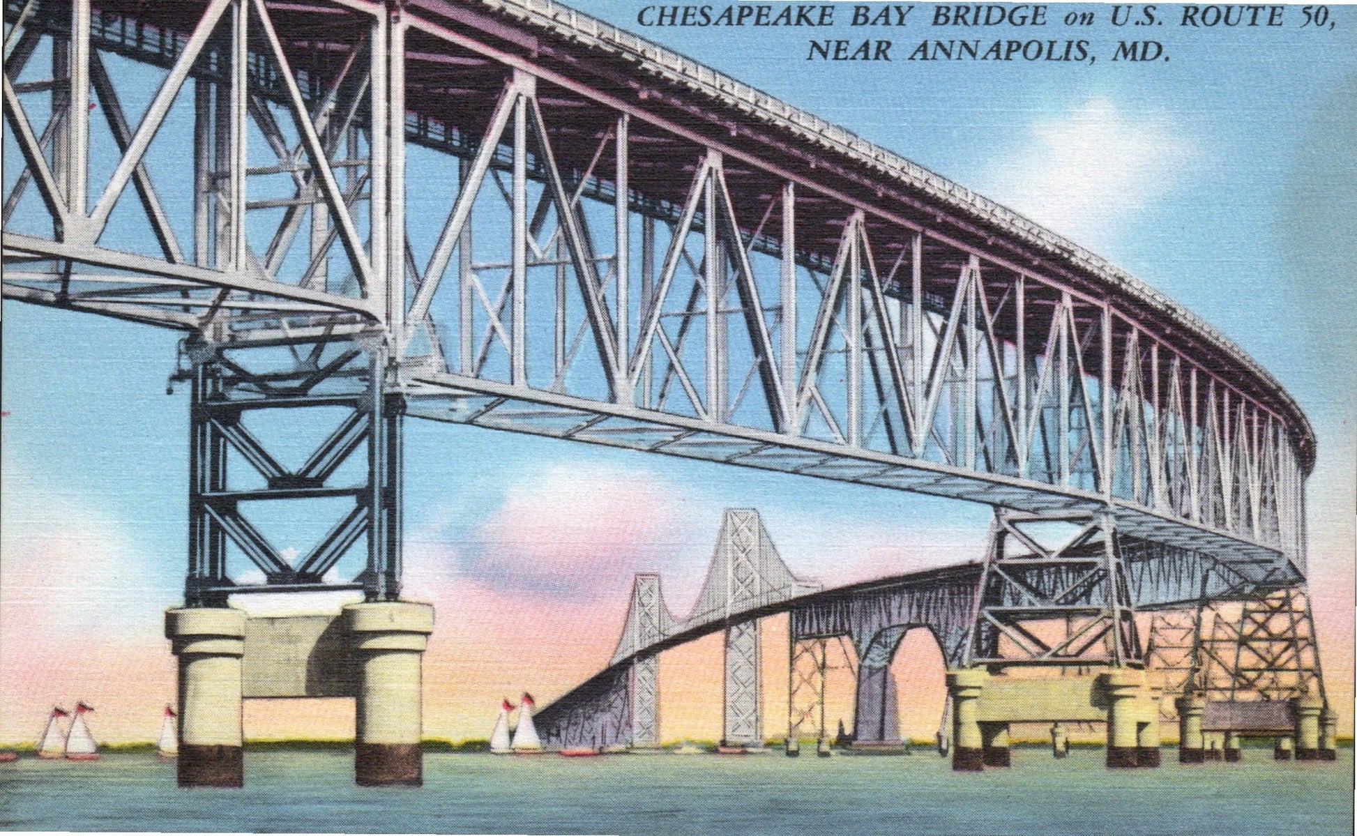 Chesapeake Bay Bridge (2 post cards, one linen, one chrome])
