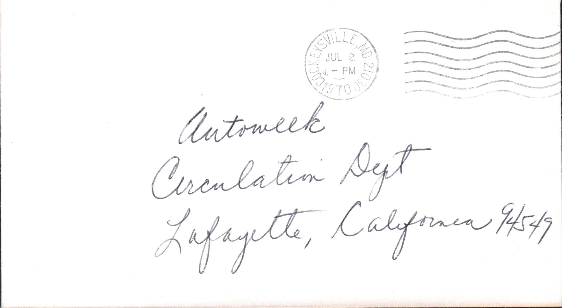 Cockeysville 1970 machine cancel on cover that looks like it never had a stamp