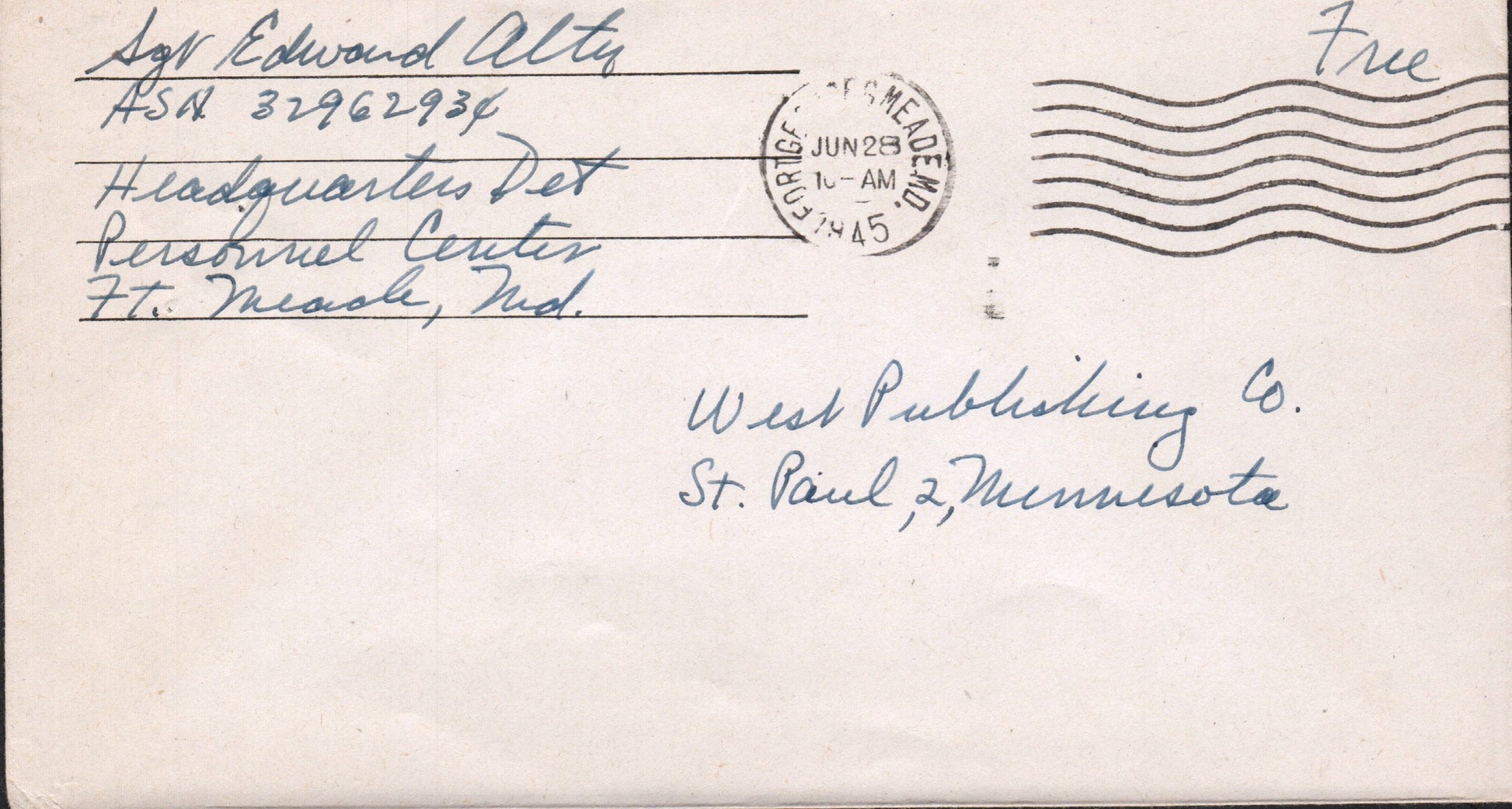 Fort George Meade 1945 machine cancel on cover, soldiers “Free” mail; 1973 machine cancel on cover