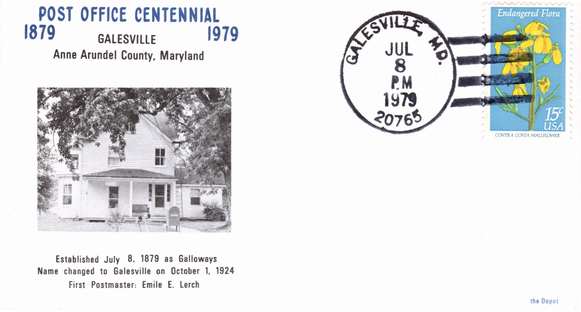 Galesville 1979 4-bar on Centennial cover, cacheted with a photo of the post office