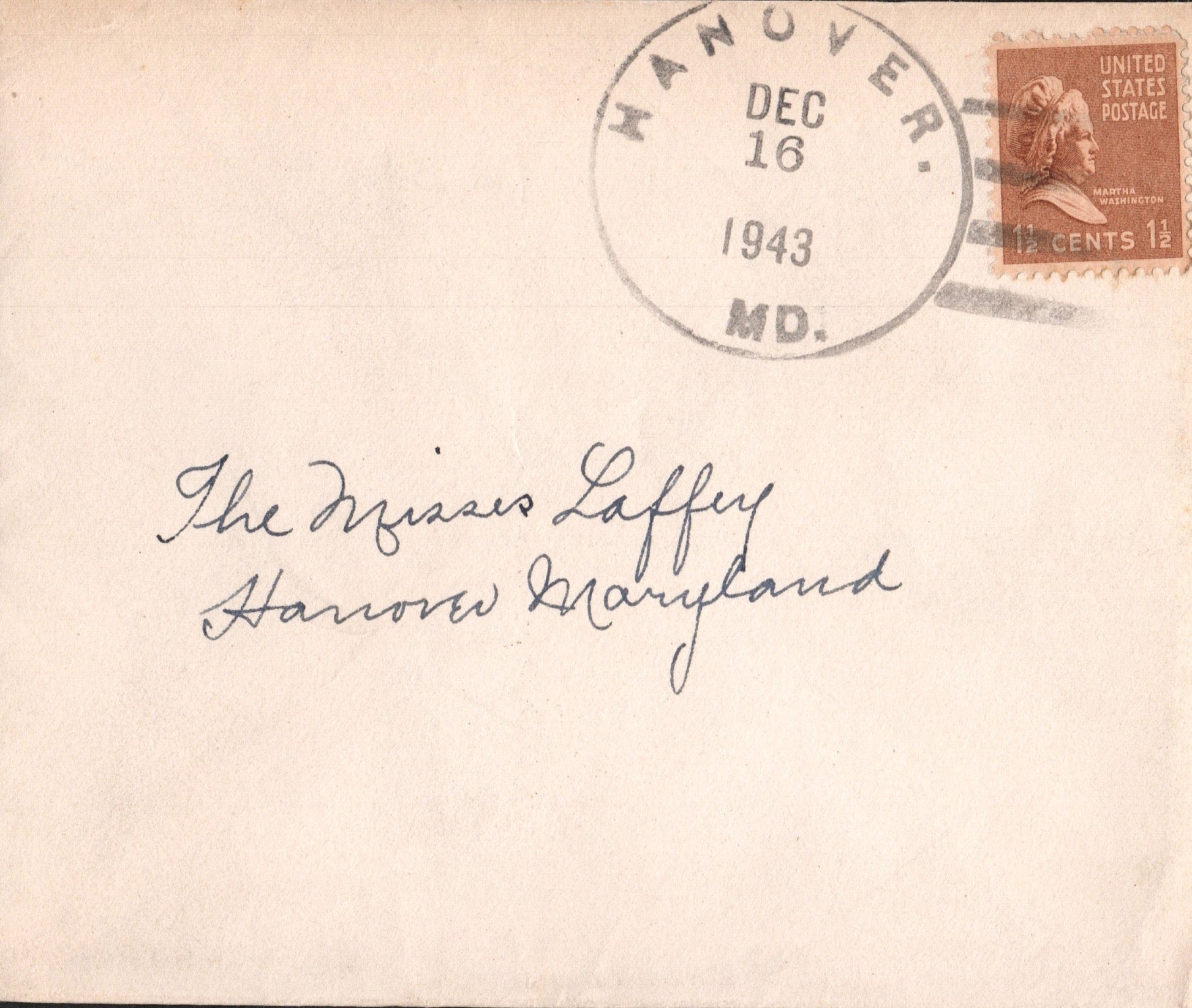 Hanover 1943 4-bar on Christmas card cover, 1 1/2¢ stamp