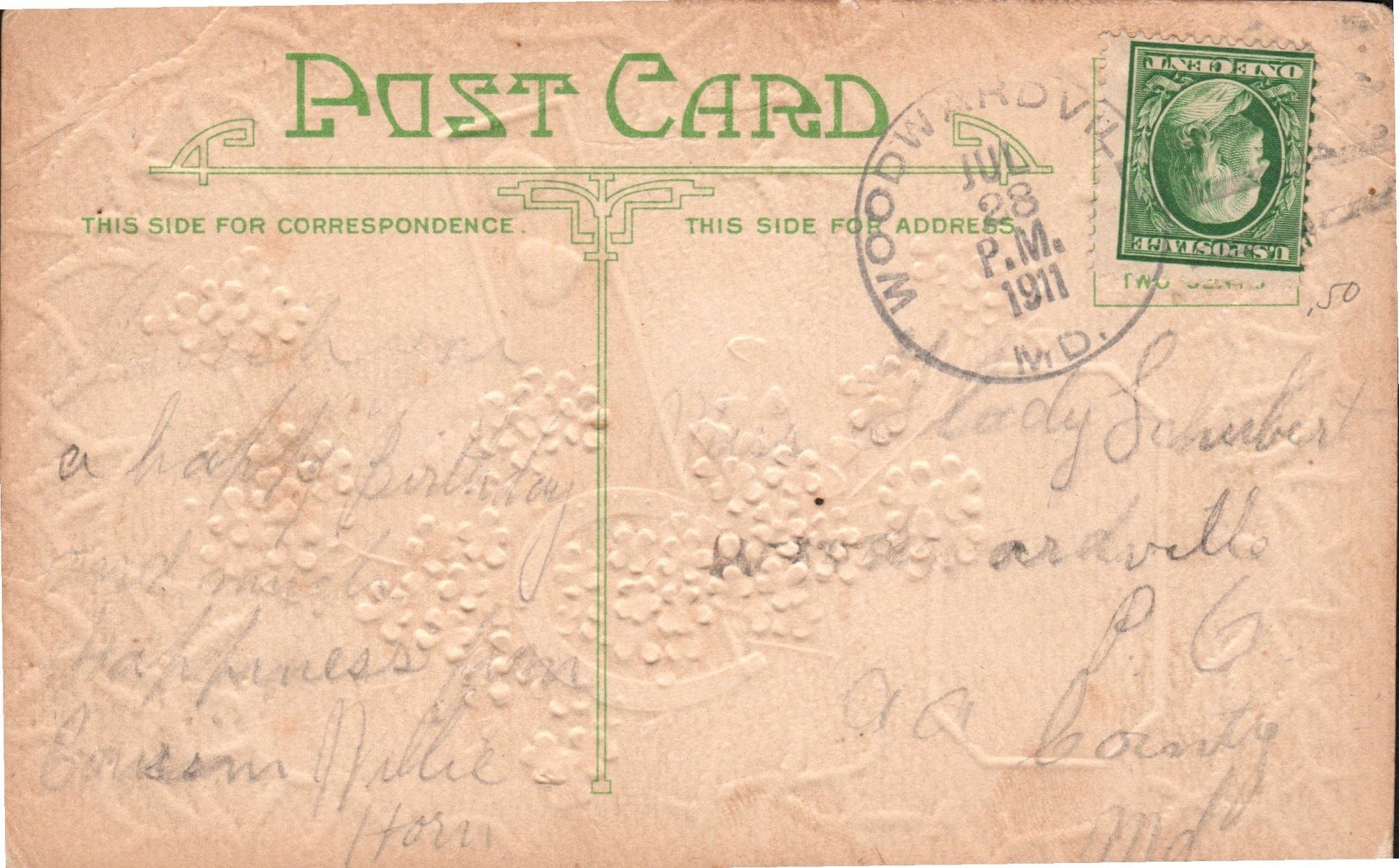 Woodwardville (1875-1927) 1911 4-bar on post card