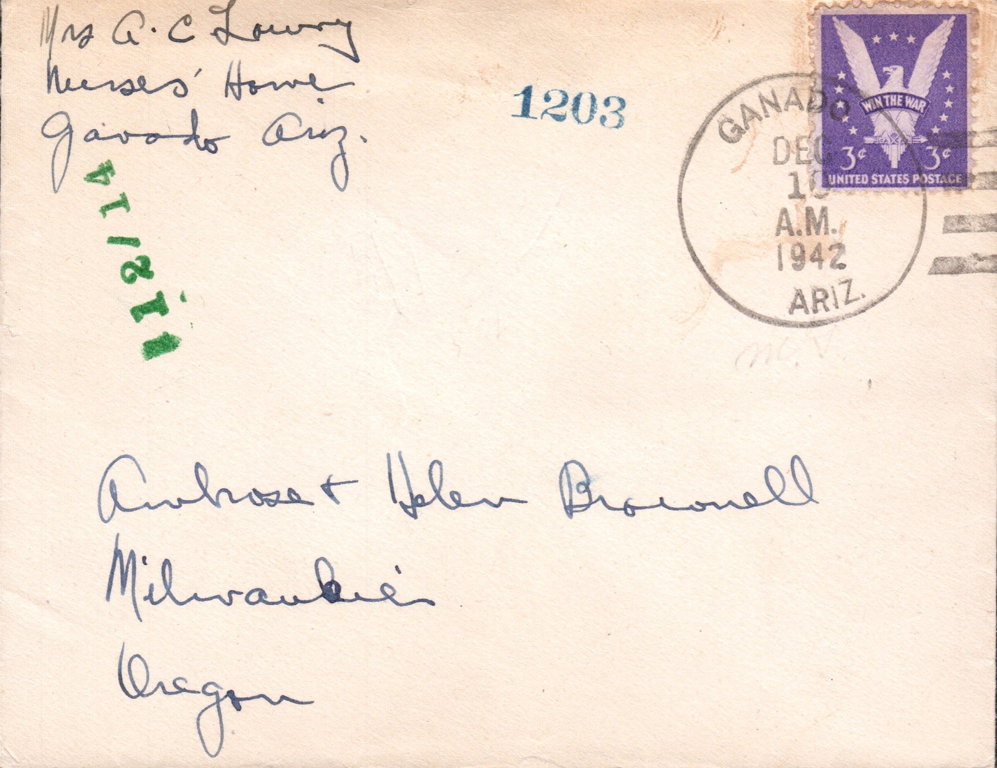 Ganado 1942 4-bar on cover