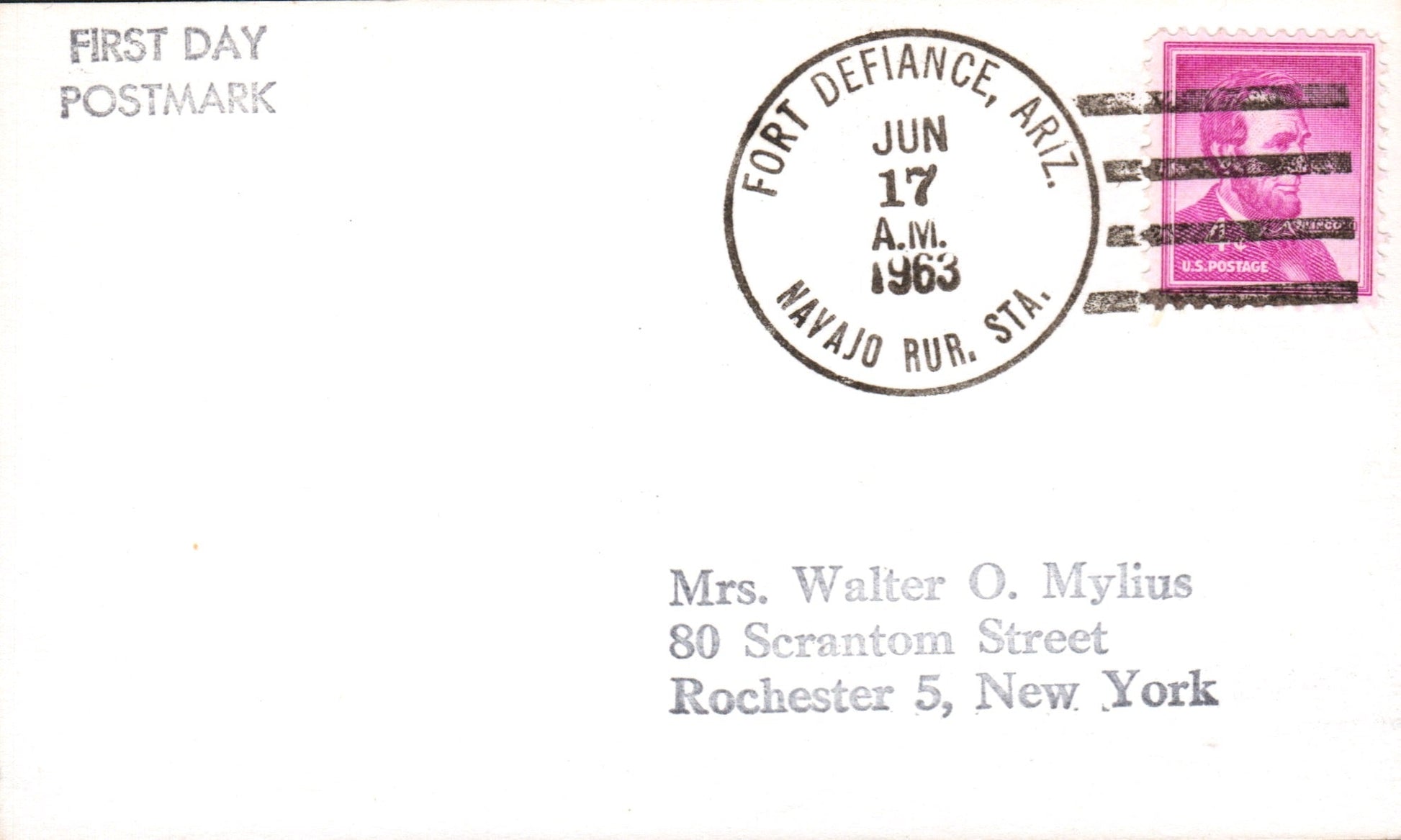 Navajo RS 1963 4-bar on FD (of postal status) 3x5 card