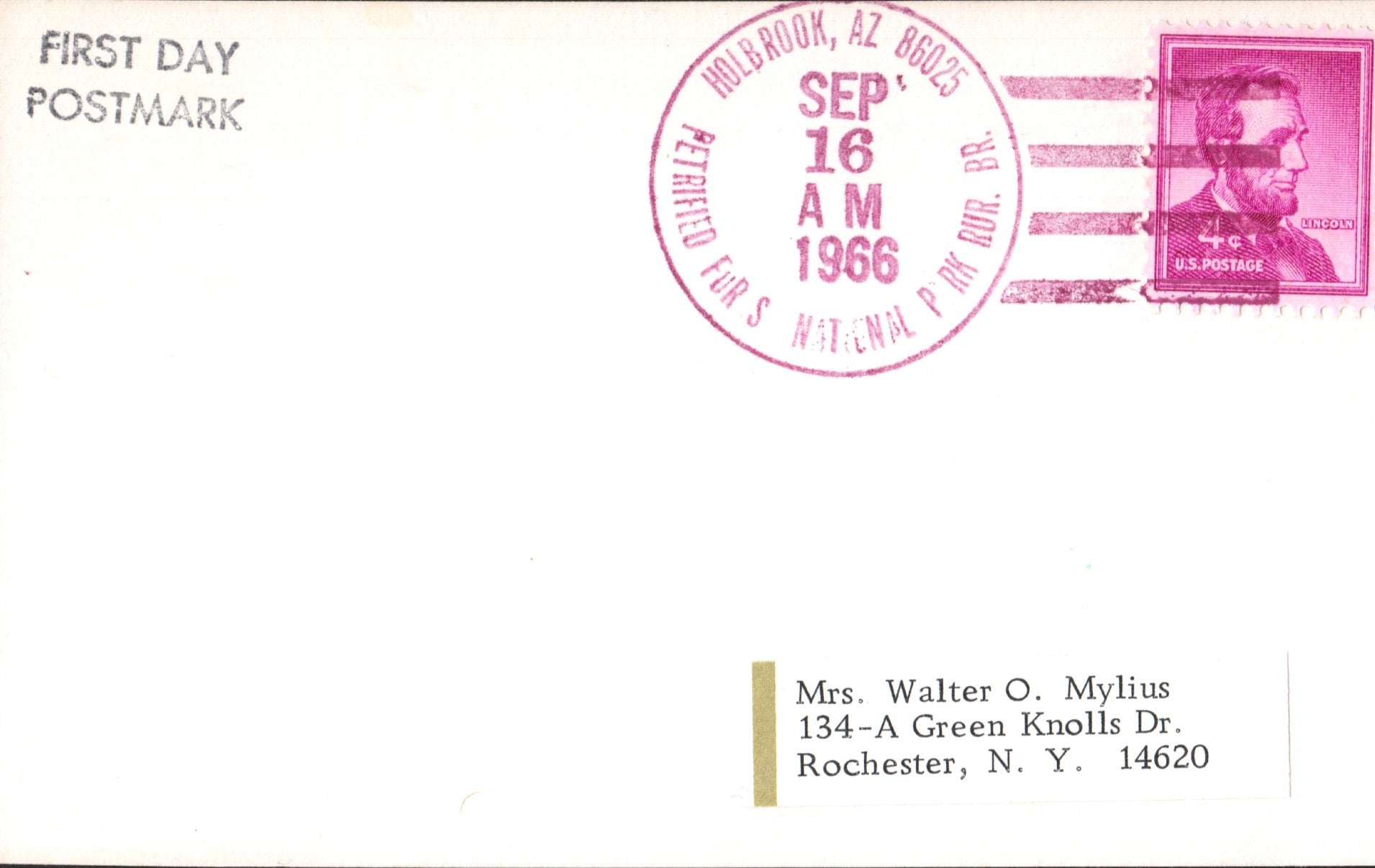 Petrified Forest National Park 1966 4-bar on 3x5 card, FD of Rural Station