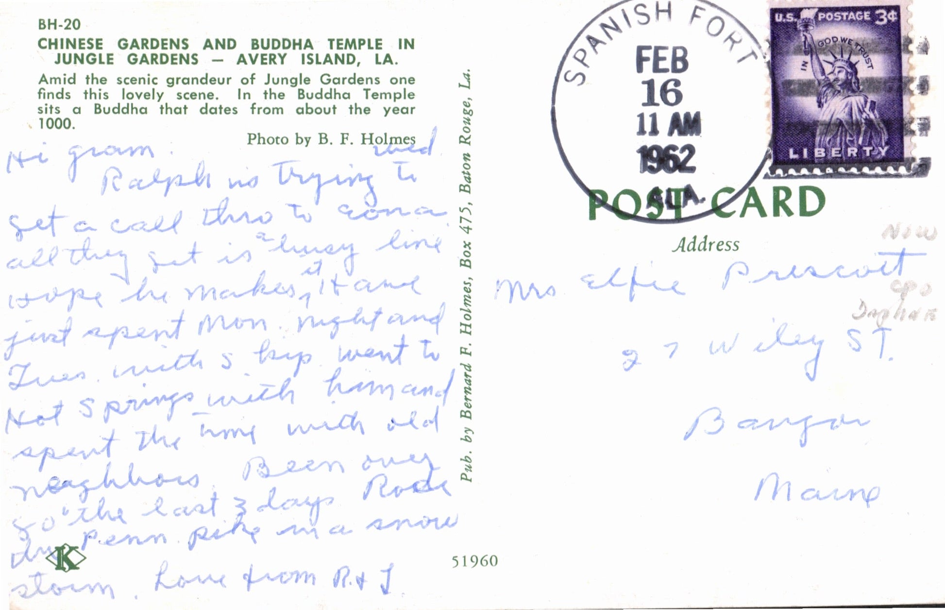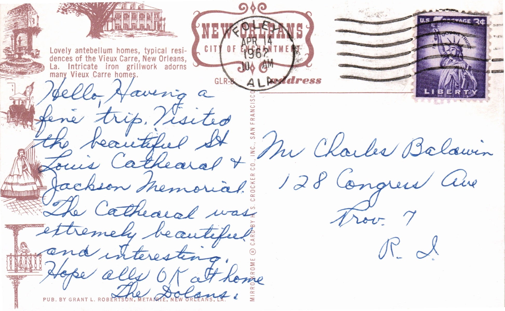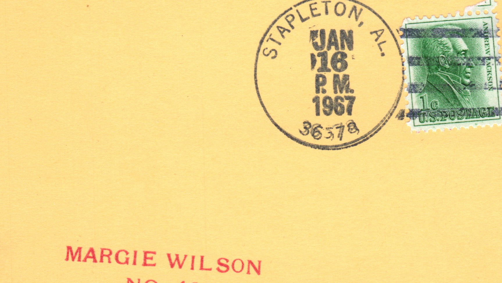 Bon Secour 1949 4-bar on post card; 1968 4-bar on 3x5 card