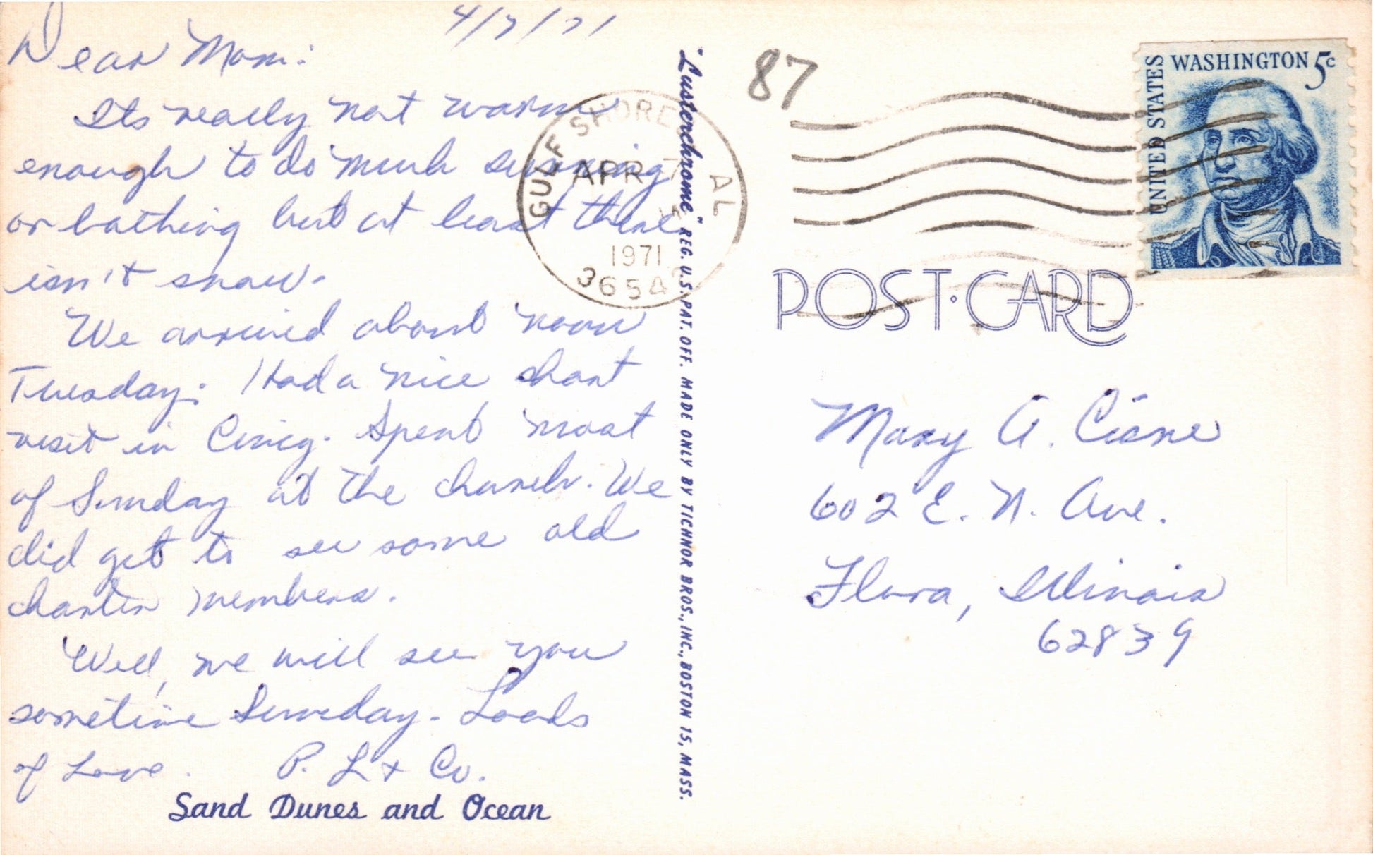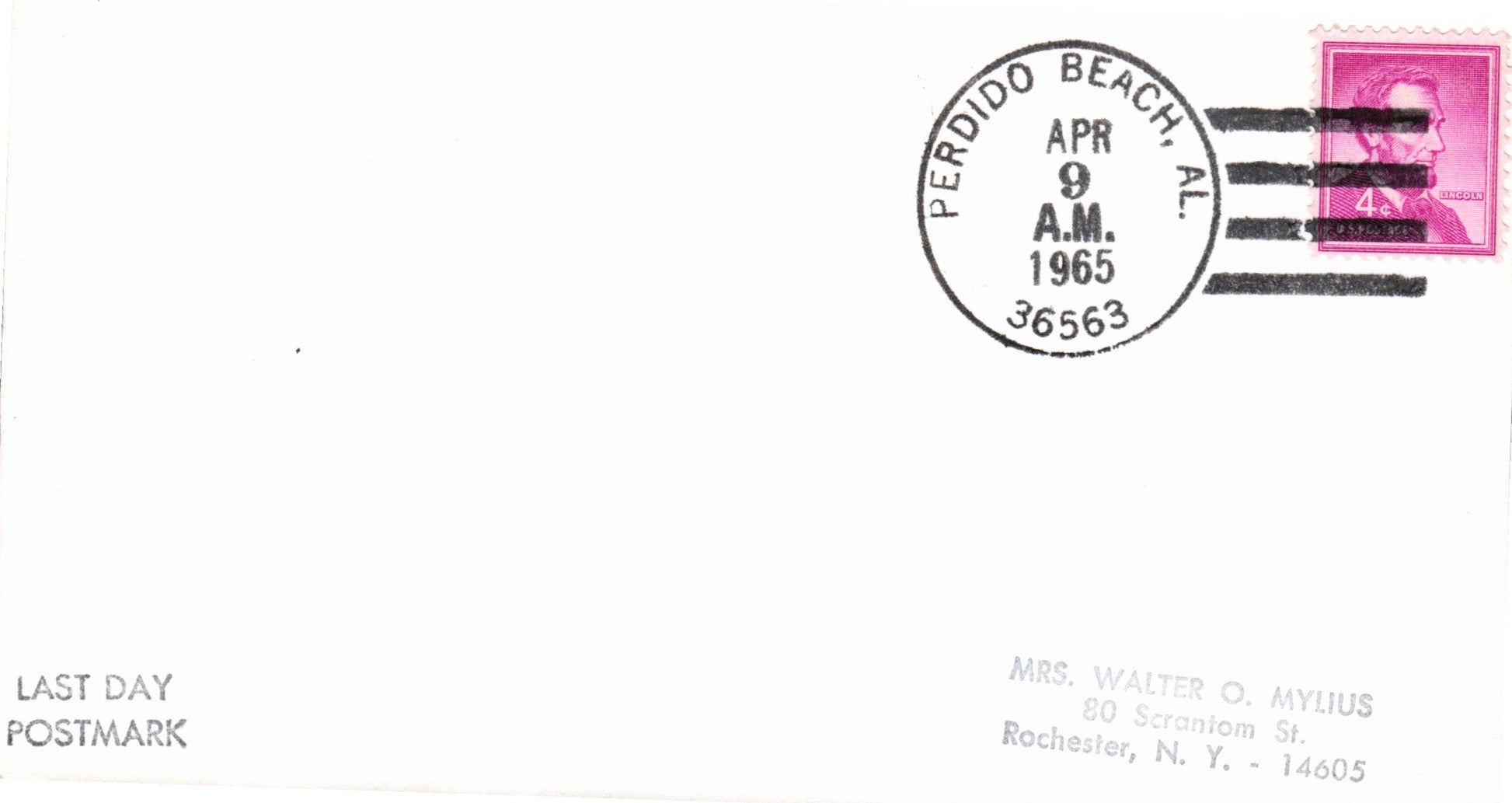 Perdido Beach 1965 4-bar on LD cover-sized card