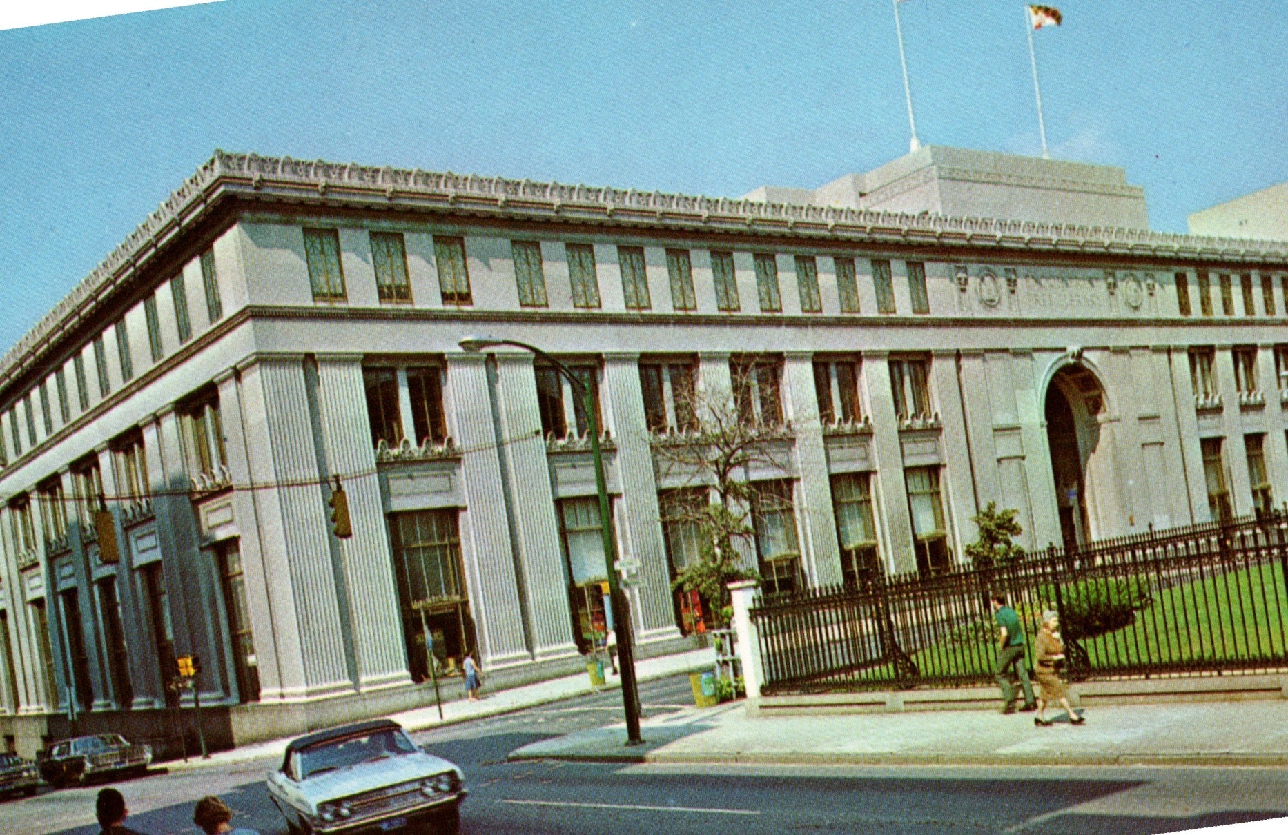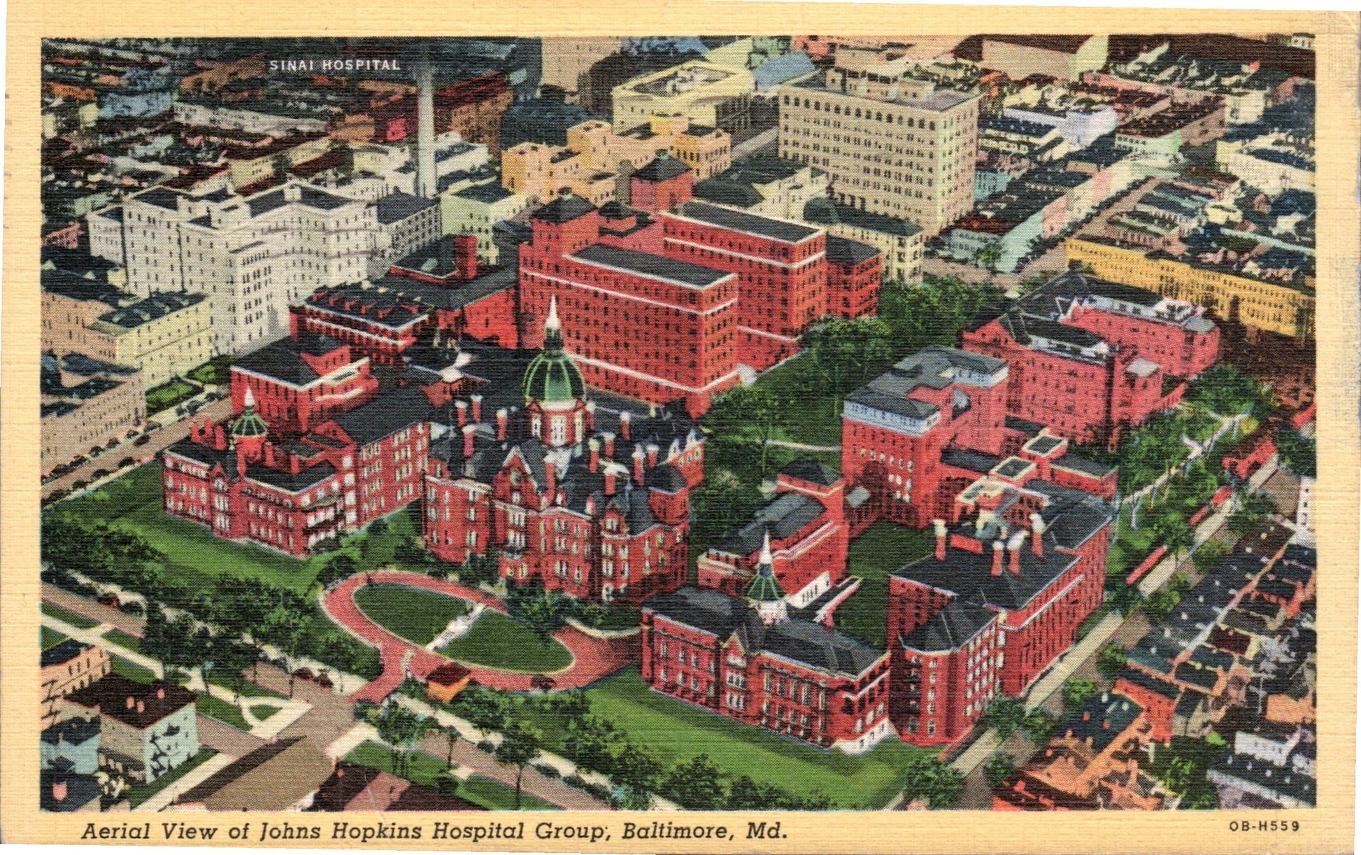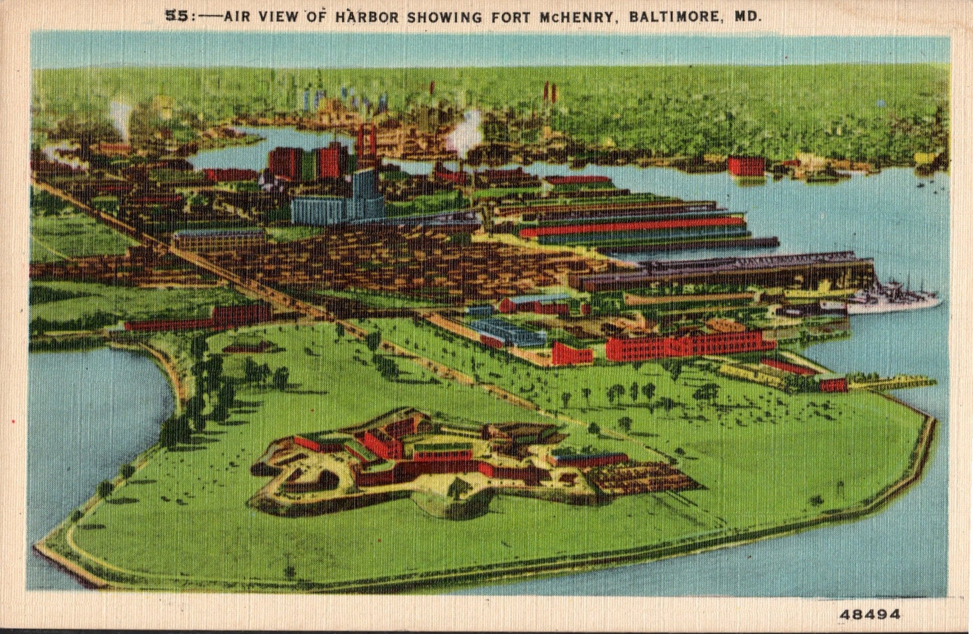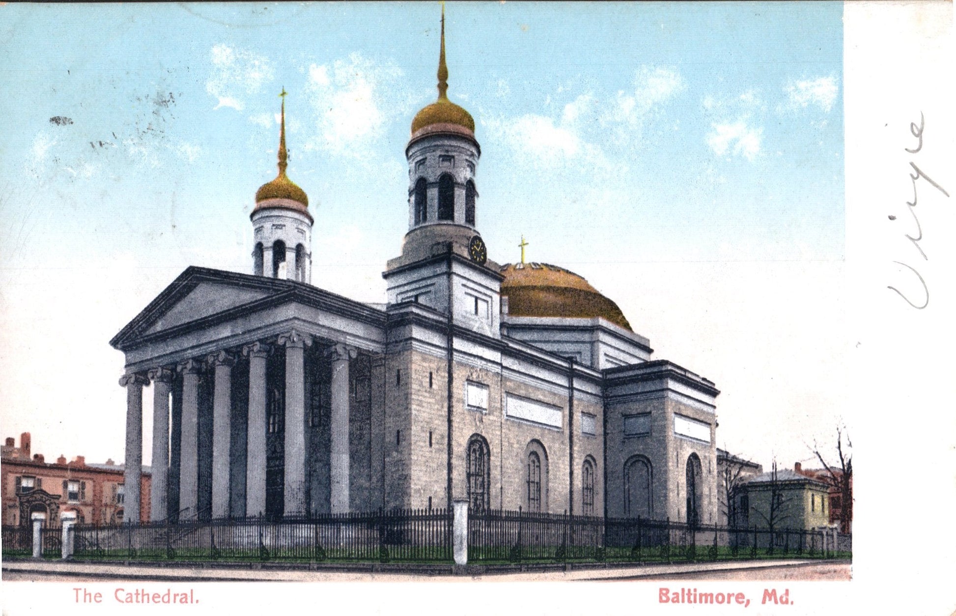 Post cards: “Mount Vernon Place” [Continental]; Baltimore and Ohio building [c.1910]; Lexington Market [1926]; “Mt. Royal Station” (RR) [1908]; “New Court House” [c.1910]; “War Memorial and Plaza” [linen]; “Haussner’s Restaurant” [2 chrome views of paintings]; “Johns Hopkins Hospital” [linen]; Johns Hopkins aerial view [linen]; “Post office and Court House” [linen]; Fifth Regiment Armory [1924]; Eastern High School [c.1910]; “Western Female High School” [1907]; “Goucher College” [linen]; “Enoch Pratt Free Library” [chrome]; “The Cathedral” [3 views, 1907 Transfer Clerk Camden Sta. cds, 1910, linen]; Goucher College Memorial Chapel [chrome]; “Francis Scott Key Monument” [2 views, one linen, one chrome 1983, postal markings on picture]; “Evergreen House” [3 views, two exterior and one interior, all chrome]; “Flag House” [chrome, 1956]; “Fort McHenry”[7 chrome cards, one aerial view, one linen, 3 are Continental]; “Hanover Street Bridge” [linen]; Bay Shore Park with crowd [1909]; Druid Hill Park [1907]