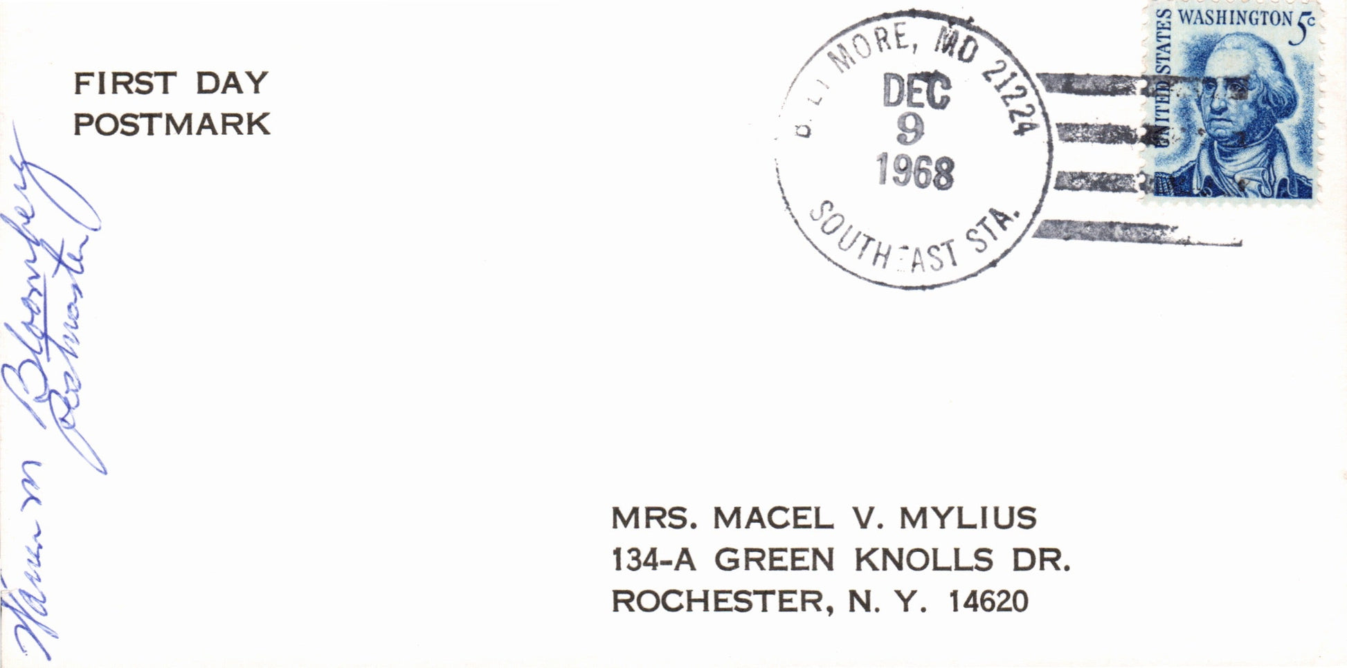 Southeast Sta. 1968 4-bar on FD (of postal status) on cover-sized card, PM autograph