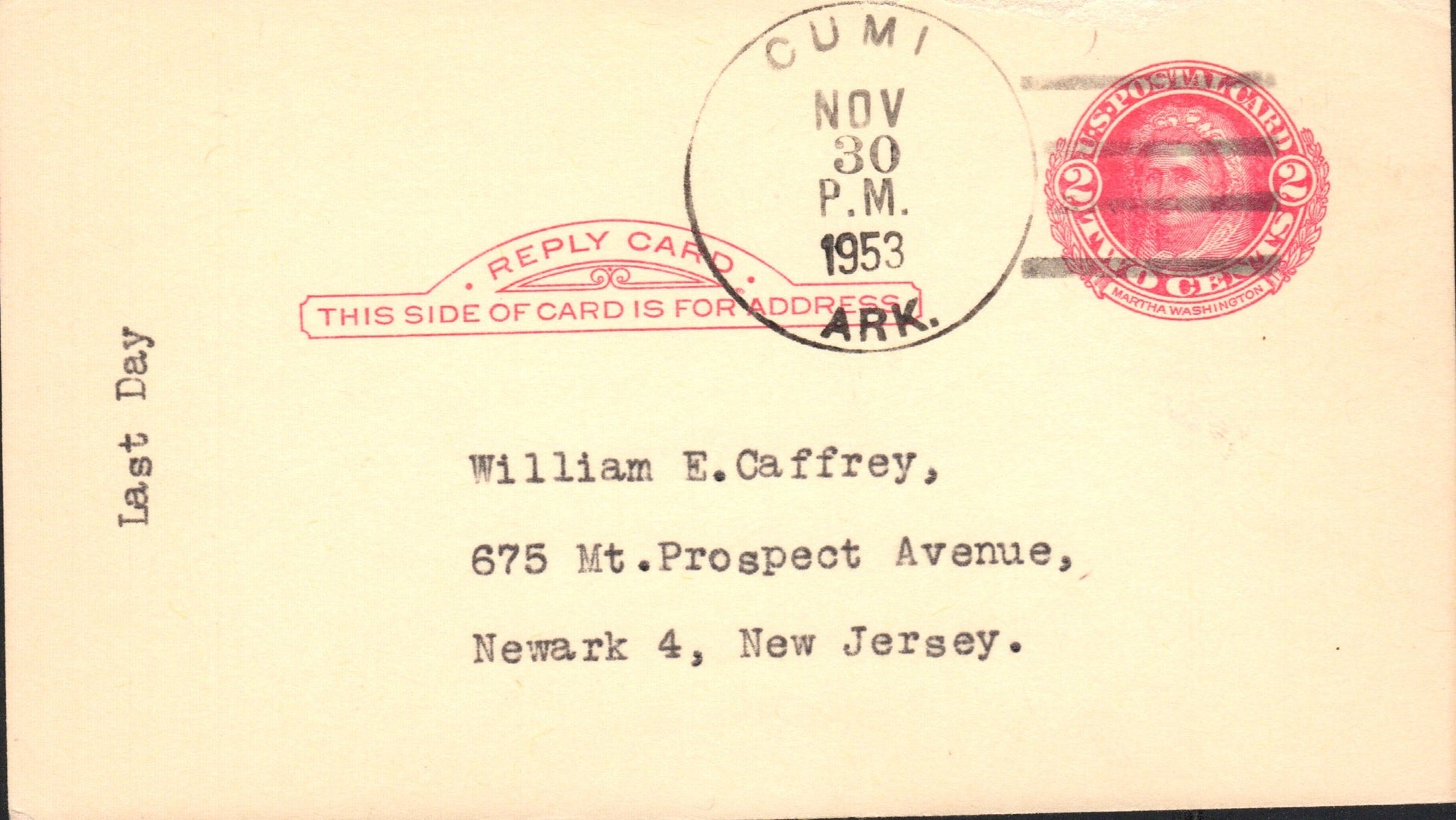 Cumi (1907-1953) 1953 1953 4-bar on LD Postal Card