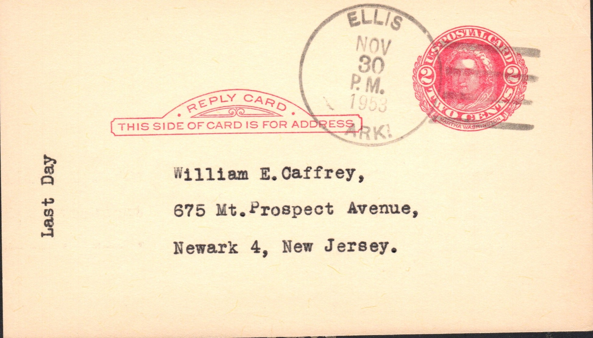 Ellis (1941-1953) 1953 4-bar on LD Postal Card
