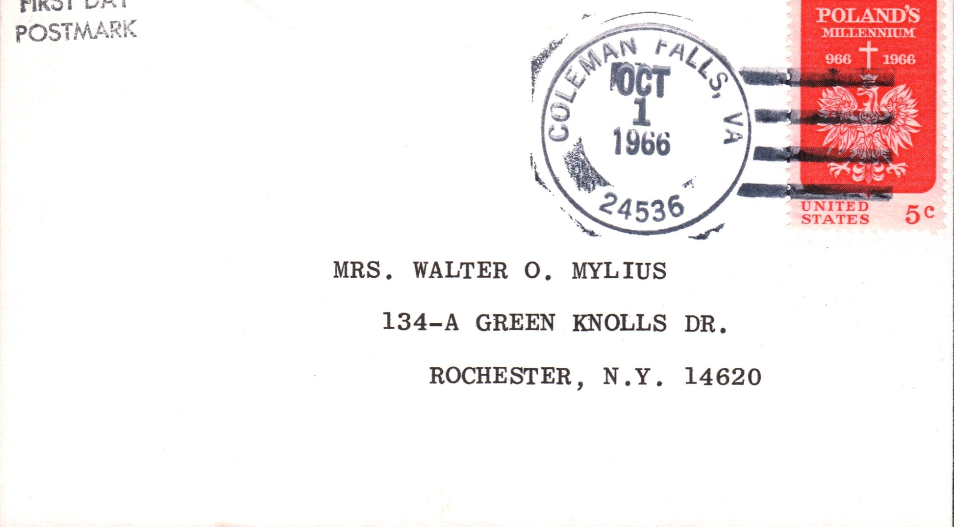 Colemans Falls 1966 4-bar on 3x5 card, round dater & PM autograph on back