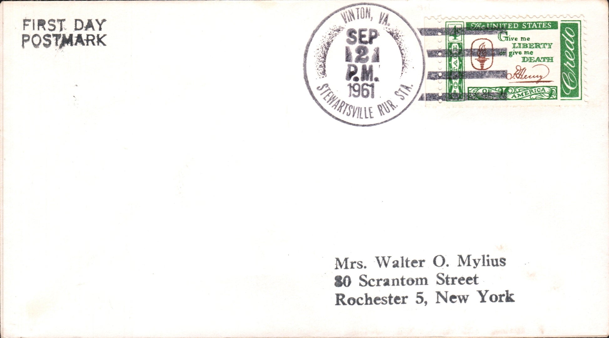 Stewartsville RS (Vinton) 1961 4-bar on FD [of postal status] cover