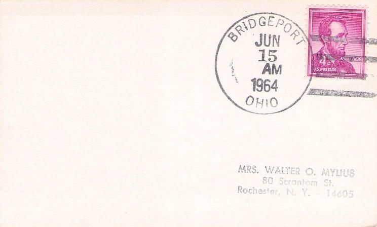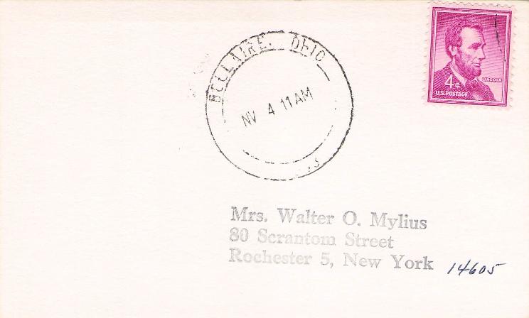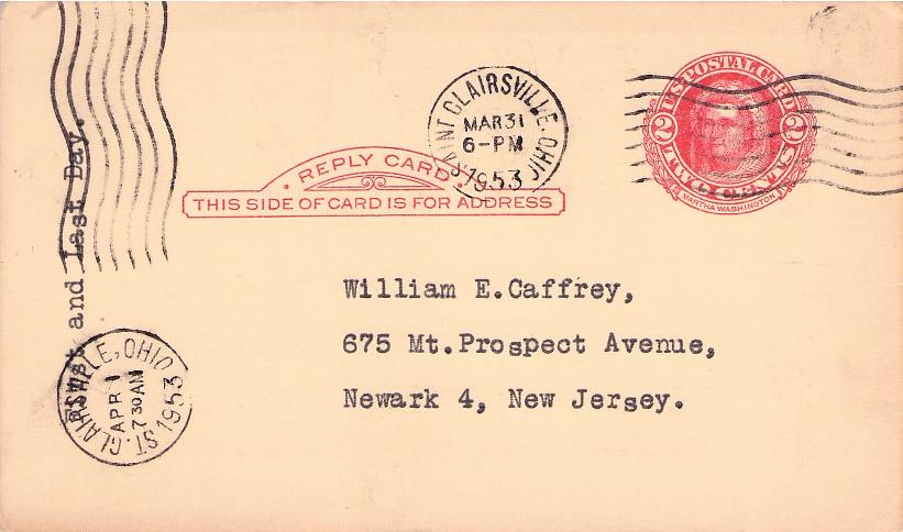 St. Clairsville 1953 machine cancel on Postal card