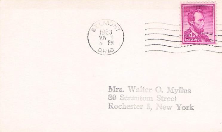 Belmont 1963 double circle on 3x5 card, PM autograph on back