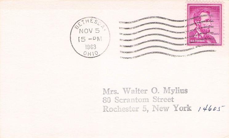 Bethesda 1963 machine cancel on 3x5 card
