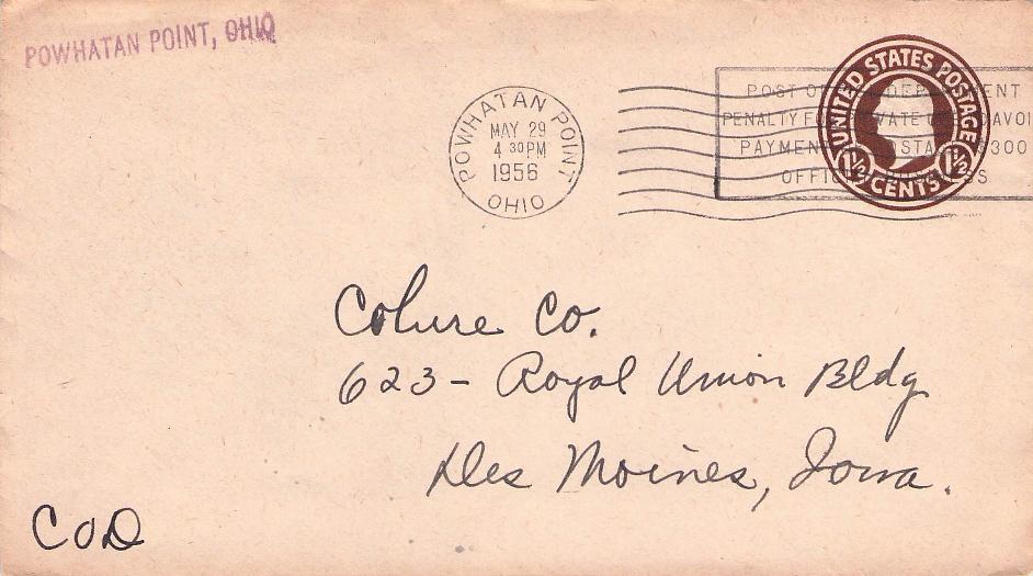 Powhatan Point 1956 machine cancel on cover